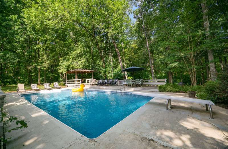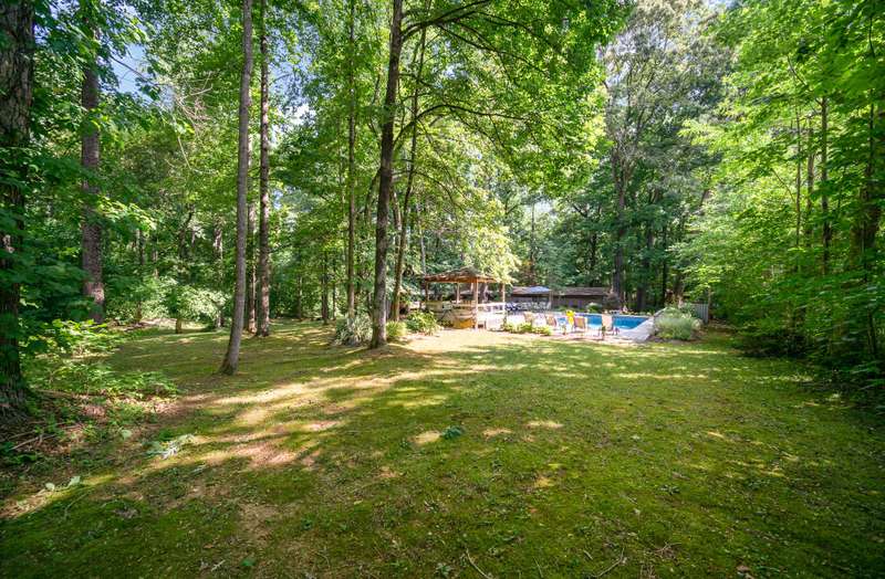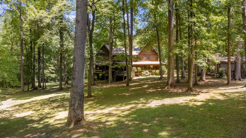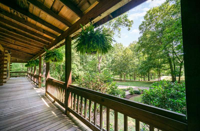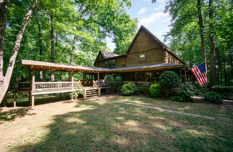Welcome to Meadow Lane, a breathtaking custom built log home with picturesque views nestled on over 5 acres with custom features throughout the home, where luxury awaits you. From rocking on the oversized front porch, to lounging by the pool, this property provides beautiful woodwork with specialty details throughout. The enormous wrap around porch and extended back porch area exceeds over 2500SF surrounded by nature views. The fieldstone rock wood burning fireplace is the centerpiece of the home. The primary BR complete with sitting area, dressing area, double walk in closets, leading to the ensuite bath provides a quiet oasis. The gourmet kitchen includes a kitchen island, eat at bar, & stainless steel appliances. The home includes multiple spaces that can serve as work space, entertaining or workout spaces. The garage has a wired workshop and bays for parking. Less than 5 minutes from I-85, this retreat is a must see! Home is priced below last appraisal.