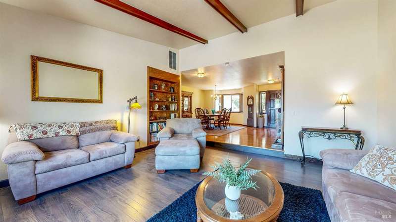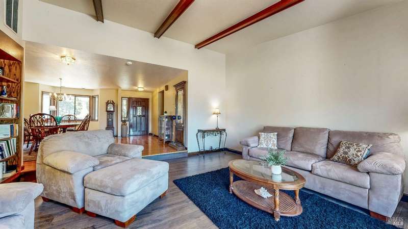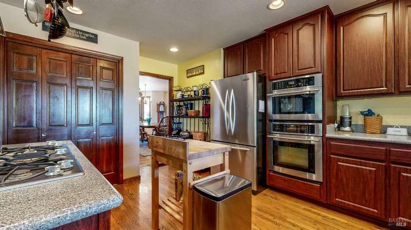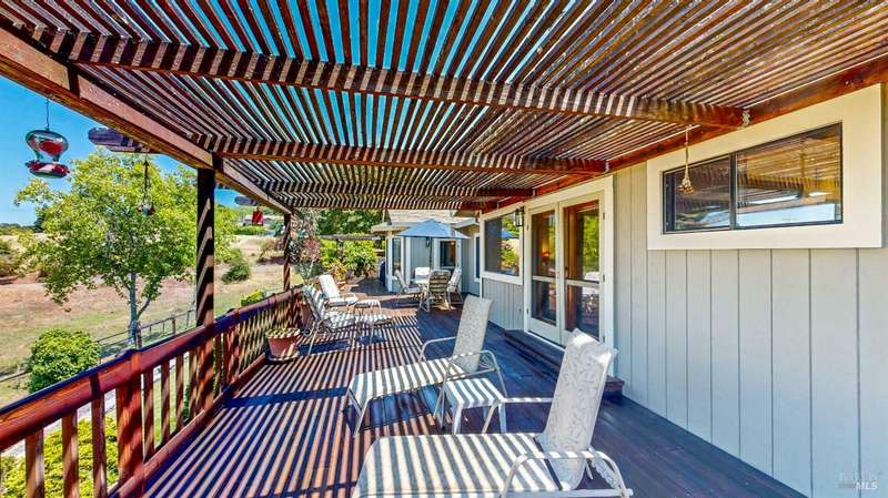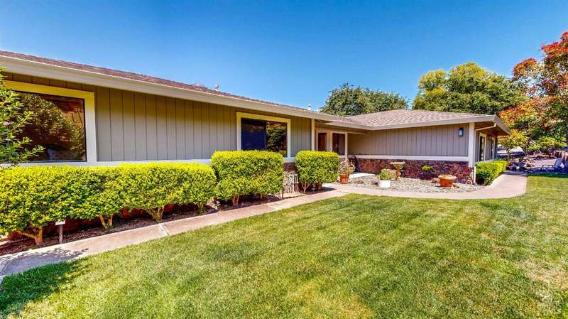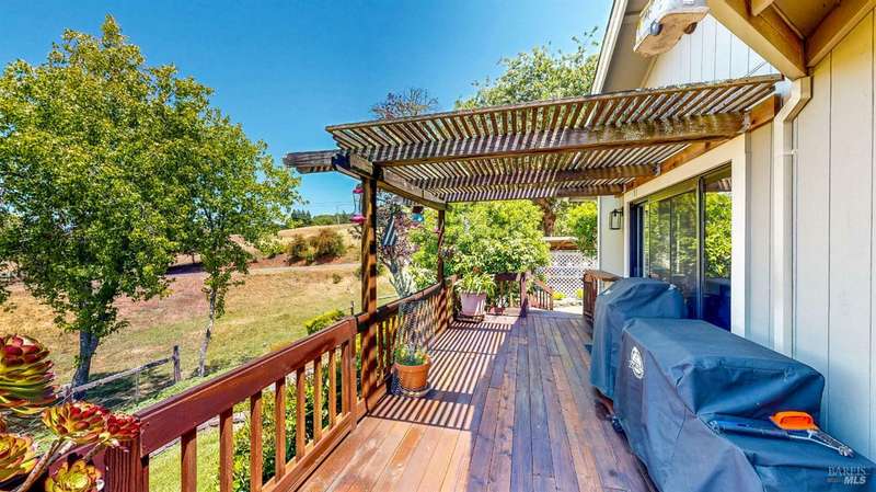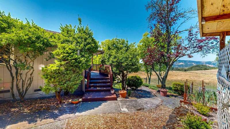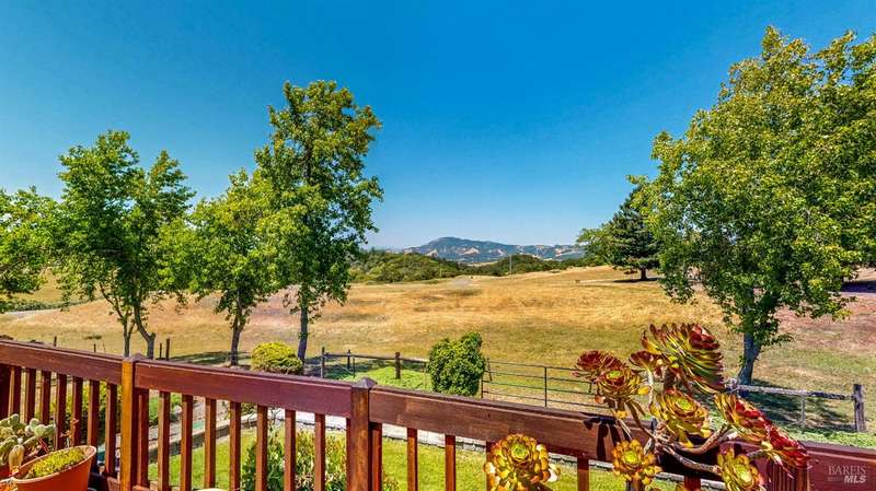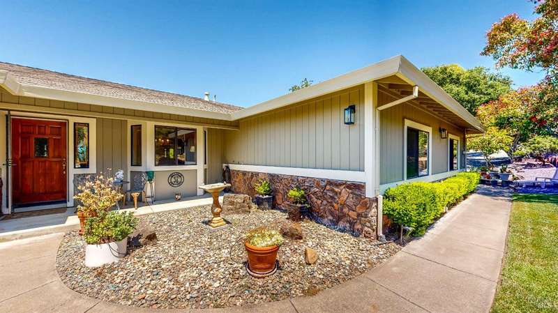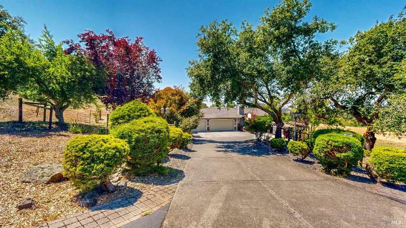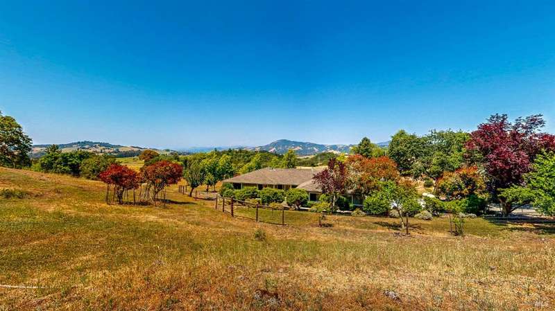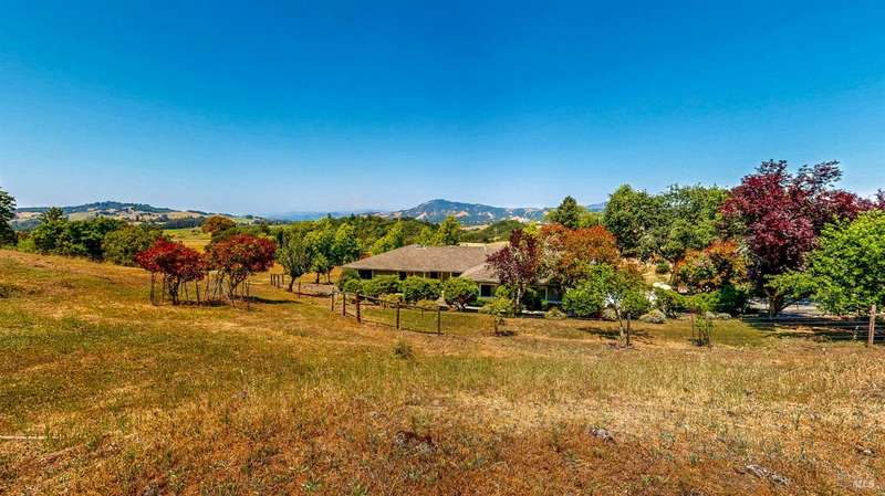 Welcome to 4389 Summit View Ranch Road a peaceful retreat nestled in one of Santa Rosa's most private and picturesque gated communities. Set on approximately 3.76 acres, this custom-built, beautifully maintained 2,631-square-foot home with three bedrooms, plus an office and 2.5 bathrooms, blends refined living with nature's bounty. Additionally, the oversized 3-car garage allows ample space for vehicles and storage. Located within an over 300-acre community featuring more than 200 acres of open space, this enclave offers only 22 estate parcels, ensuring seclusion and privacy. Enjoy your own mini orchard featuring apple, pear, lemon, and apricot trees, along with a raised vegetable garden and access to berry bushes in the shared open space. For the nature enthusiast, approximately 2.5 miles of trails wind through the community, offering ideal spots for morning strolls or simply taking in panoramic hillside views. Located just minutes from the heart of Santa Rosa, world-class wineries, and outstanding culinary experiences, this area offers a rare combination of tranquility and convenience.
