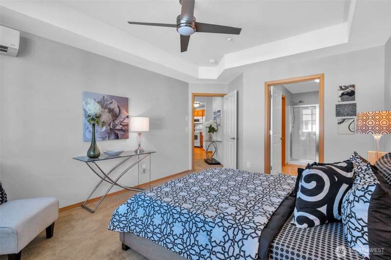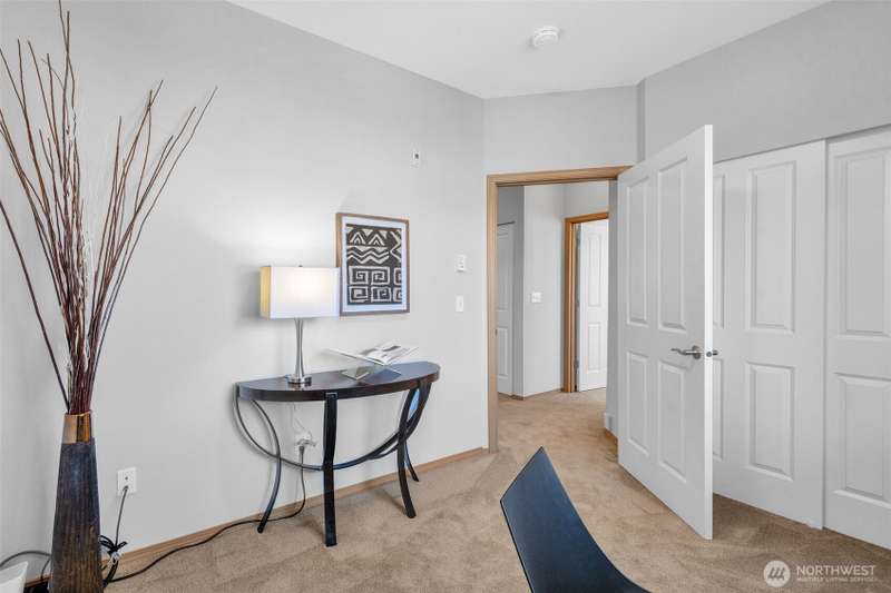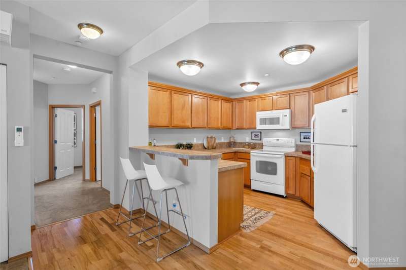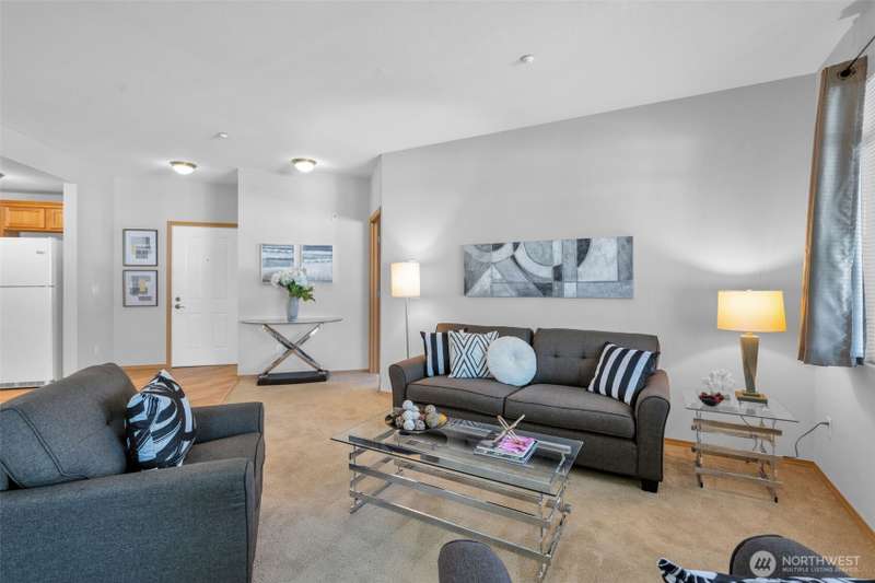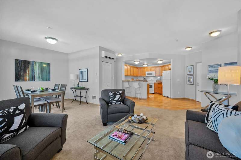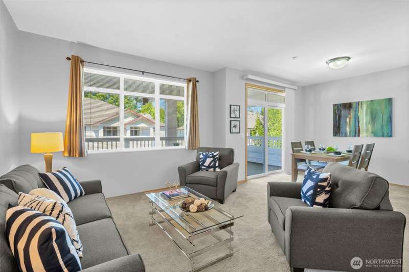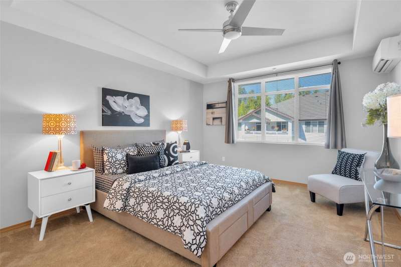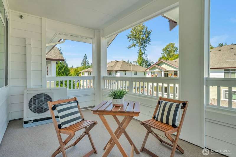 Sundance Glen is an over 55+ community. Top floor end unit in "move in" condition! Secure lobby entrance & elevator to your floor. Inviting entry with 9 foot ceilings. Spacious primary bedroom w? private bath & large walk-in closet. Open kitchen design that opens to the living/ dining rooms. Kepp cool in the Summer with AC in the unit. Relax on the 22-foot covered deck. All appliances stay including a full-size W/D. Private 1 car garage with secure lobby entrance. Ample guest parking & extra-long driveway for additional parking. Community garden & close to shopping center with QFC and Starbucks. Trilogy community & golf course across the street. Membership possible for additional fee.