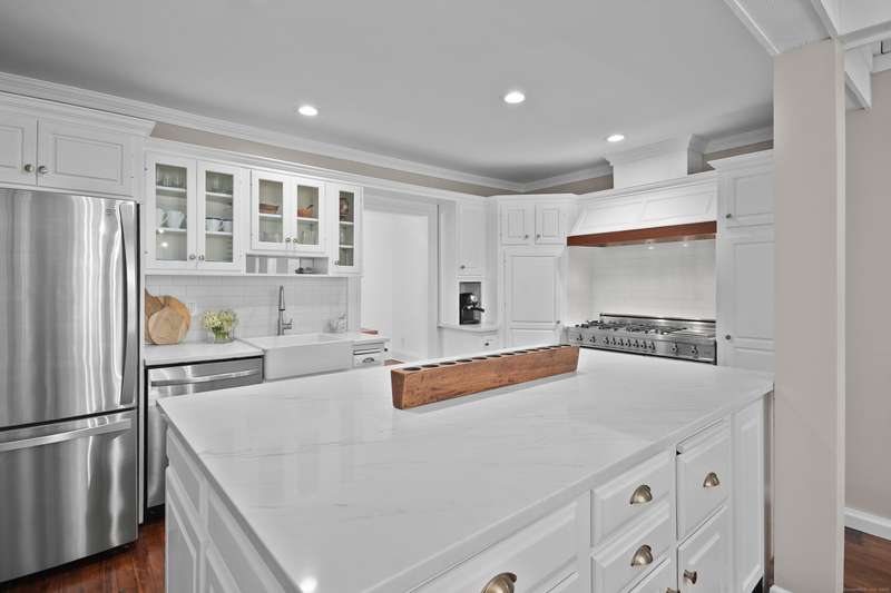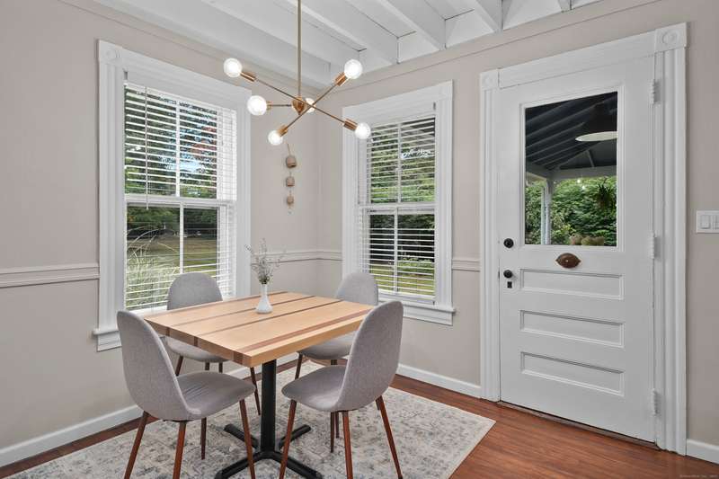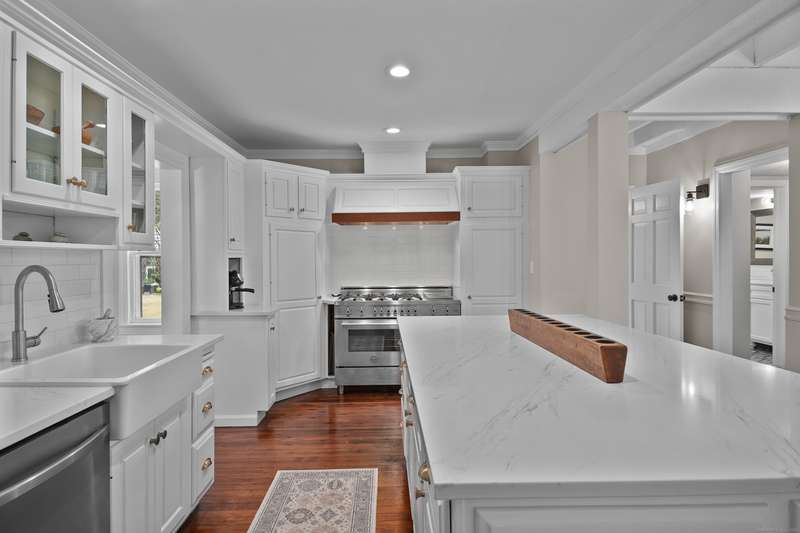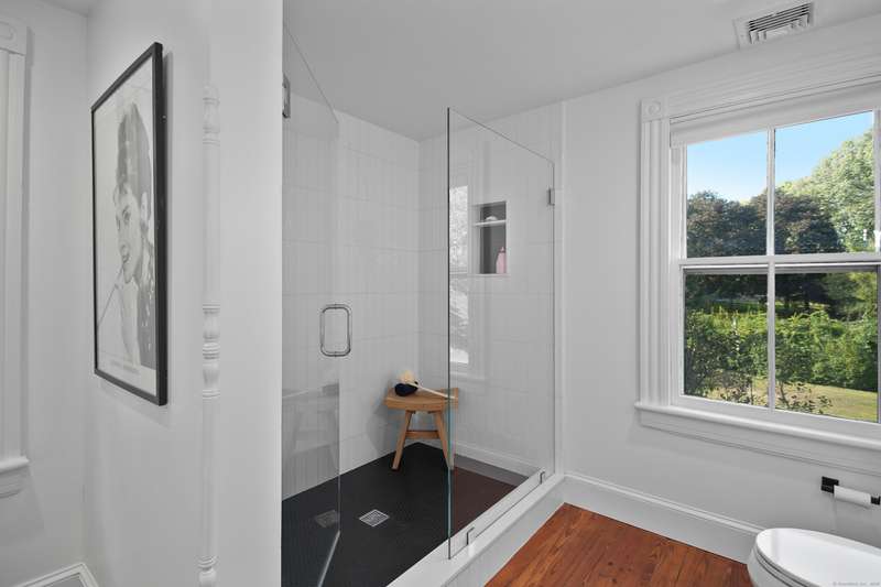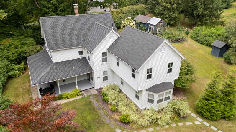 A rare blend of timeless character & modern updates, this expanded 4-bedroom, 3-bath Colonial Victorian Farmhouse offers deeded lake rights & deeded frontage on Canoe Brook Lake. You're welcomed by a gracious wraparound porch framed by mature flowering trees, perennial gardens, & a classic carriage house/barn. Inside, rich hardwood floors, custom millwork, & soft neutral finishes create a warm, inviting atmosphere. Spacious living room w/ wide-plank floors, a wood-burning fireplace, built-ins, & a sunlit picture window. Dining room, also w/ wide-plank flooring, opens through French doors to a charming patio overlooking the peaceful grounds. Remodeled chef's kitchen is a true centerpiece, featuring a large center island, six-burner Bertazzoni gas range, stainless steel appliances, quartz countertops, & a cozy breakfast nook. Adjacent is a generous pantry, mudroom, laundry, & access to a second garden patio. Sun-filled family room addition doubles as a potential first-floor primary suite