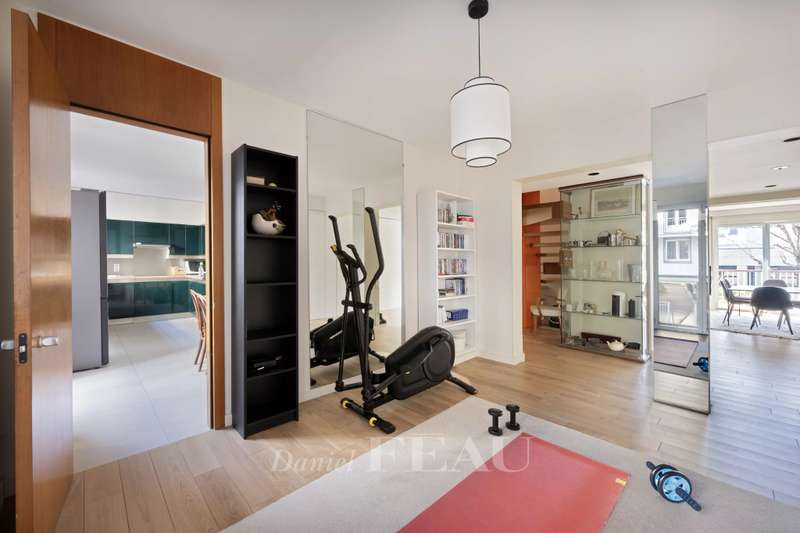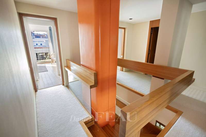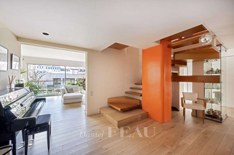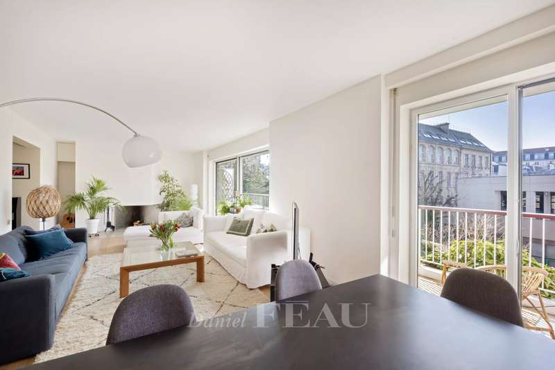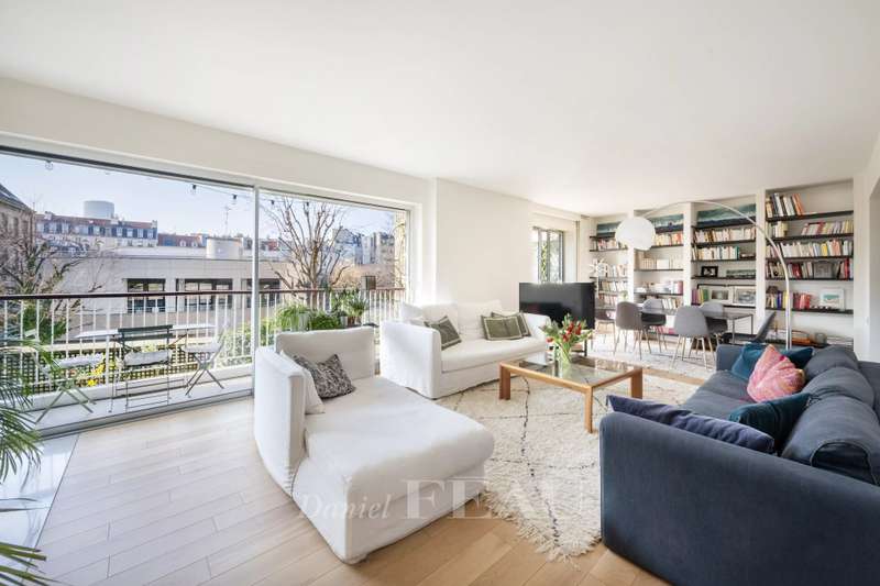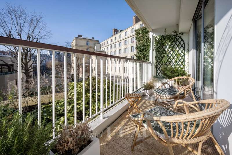 Sole Agent. Between Luxembourg Gardens and Val de Grâce and close to International Montessori. This sunny 210 sqm dual-aspect family apartment is on the 1st and 2nd floors of a mid 20th century building. It includes a south-facing 43 sqm living/reception room with a fireplace opening onto a continuous balcony overlooking a courtyard/garden, a separate kitchen, and a dining room or possible bedroom. The upper floor comprises five bedrooms (three opening onto a continuous balcony overlooking the garden), two bathrooms and a shower room. With a cellar.Parking