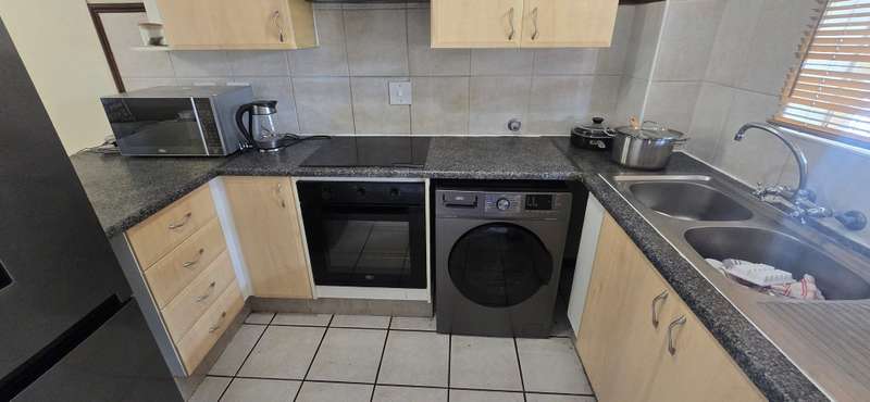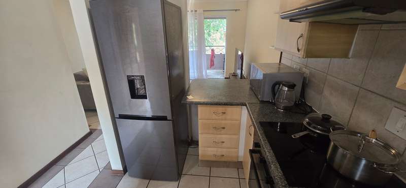 Located in a sought-after security complex, this unit offers 2 Bedrooms with built-in cupboards and tiled floors. 1 Full Bathroom with bath and shower. Open-plan Kitchen features a breakfast counter, with ample cupboard space and space for washing machine and fridge. Living area has space for 6 seater Dining table and L-shape coach. Sliding door opens to a private balcony. The property offers secure parking with single Garage, and guest parking. Complex offers Communal Pool. Located in a sought-after 24 hour Access controlled Security complex. Complex is well-located in close proximity to Shopping malls, private schools, Virgin Active gym and Boardwalk restaurants with easy access to all major routes.