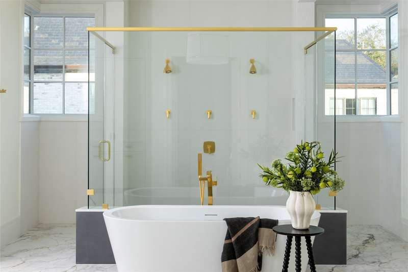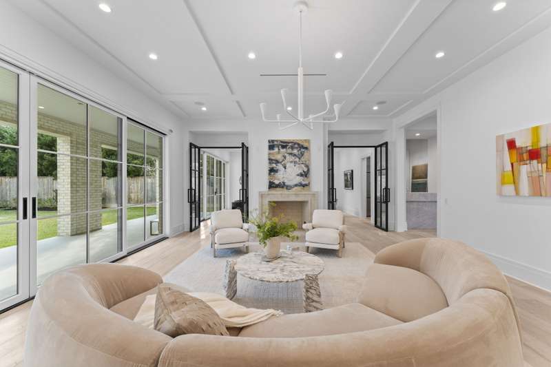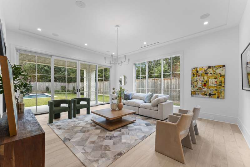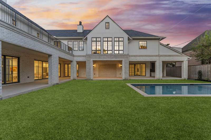 Now Nearing Completion! Thoughtfully designed by Mark Atkins of Masa Studios and JD Bartell and built by Layne Kelly Homes. Beautiful entry with front stair to second floor. Study with access to bar and wine room. Island kitchen with adjacent breakfast room opens to Great Room with fireplace and views and access to covered patio, yard and pool. Catering kitchen/butler’s pantry with access to formal dining. Stunning second level primary bedroom suite with built out closets, spacious bath, bedroom with views, sitting room and access to master terrace overlooking pool and grounds. Four additional bedrooms with private baths and a game room on level two. Stairs and elevator to third floor with natural light has living area, a bedroom and bath, media room, fitness and home office space. Circular front drive with gated driveway to four car garage. Back yard with summer kitchen, pool bath, pool and spa. Awesome River Oaks location, quality and design.
