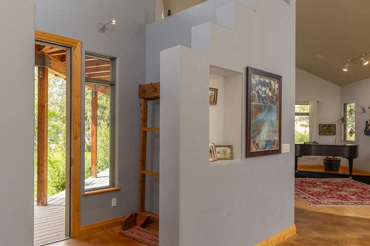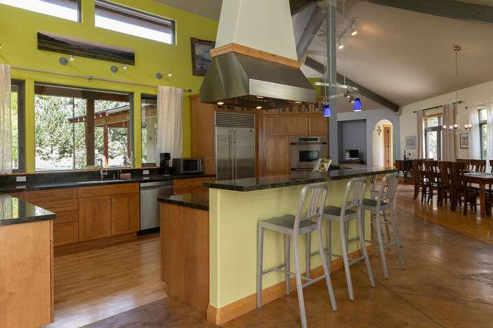 This extraordinary home embraces views and a landscape setting unrivaled for the area. Included is a 10-year old, established food forest that walks like the Garden of Eden, picking ripe fresh fruit, nuts and berries, including many medicinals. The masterfully designed home captures abundant sunlight for passive solar heat as it's located exactly where the Wood River Valley opens up...
