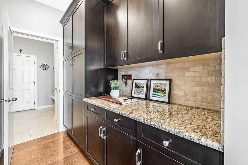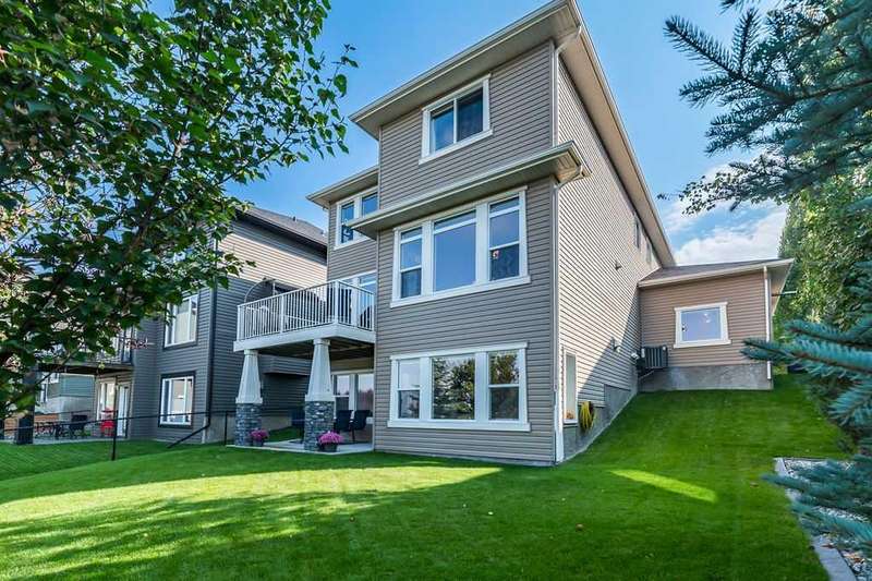 **OPEN HOUSE - Saturday 2-4PM*** PRICE REDUCTION....IF OVERSIZED TRIPLE GARAGE, WALKOUT BASEMENT, and backing onto open space are on your wish list, then you’ve hit jackpot! Located in one of Westmount's PREMIER CUL-DE-SACS adjacent to endless paths and parks, this home features nearly 3300sqft developed space. One step inside (click 3D for virtual video or come by our open house), and you will fall in love with its superb layout, warm ambiance, and expansive views. MAIN FLOOR features large entrance, study with double barn doors, living room with gas fireplace, dining area with huge windows overlooking parks & pathways, kitchen with large island, walk-through pantry, granite countertops & ss appliances (incl gas range), and rear hall with built-ins. UPPER FLOOR features bonus room with vaulted ceiling and more views, spacious primary bedroom with walk-in closet and gorgeous ensuite bathroom , two more bedrooms and full bathroom. WALKOUT BASEMENT features recreation room with wet-bar, fourth bedroom and yet another full bathroom. STEP OUT TO BACK YARD to experience outdoor living at its best with oversized lounging area perfect for family gatherings, beautifully landscaped yard with mature trees, and access to endless paths and parks. OVERSIZED TRIPLE GARAGE is heated and easily accommodates three trucks, plus a nice sized workshop space to boot! Did we mention AC, hardwood, new carpet, and underground irrigation system? Truly this TRIPLE GARAGE HOME w WALKOUT BASEMENT is one of the best, and a rare gem to hit Okotoks! RECENT UPDATES: basement finished (2022), AC (2021), paint (2020), hot water tank (2022), carpet (2023), underground sprinklers (2021), composite balcony planks (2023).