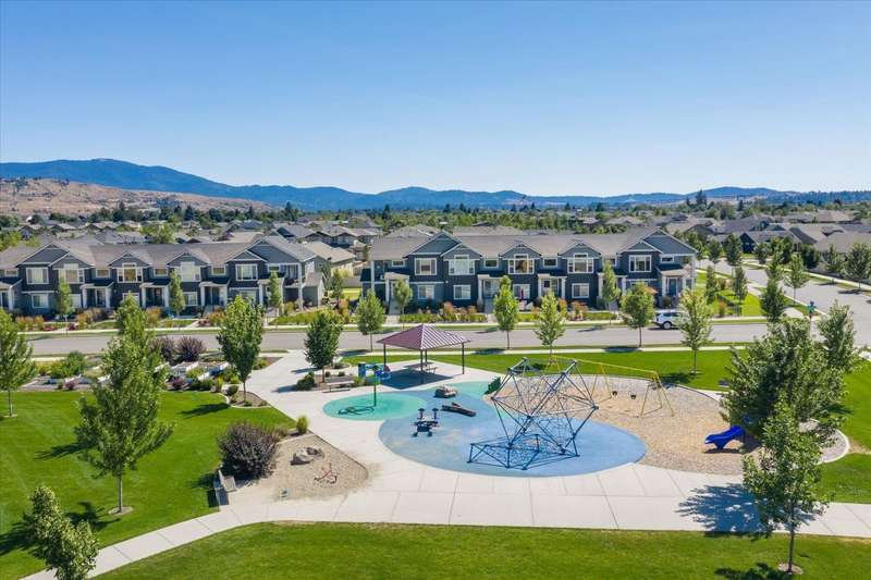 Welcome to this beautiful River District townhouse in Liberty Lake, one of the area’s most sought-after locations! Perfectly positioned, this home is within walking distance to the Centennial Trail and river, Orchard Park with pickleball courts, playground, and covered pavilion, as well as the community garden and farm. It’s an incredible spot to live with endless opportunities for recreation and connection right outside your front door. This 3-bedroom, 2.5-bath home features a spacious kitchen with an island and walk-in pantry, a fully fenced private patio off the living room, and a 2-car garage for convenience. The large primary suite impresses with vaulted ceilings, a walk-in closet, and a bathroom with double sinks, while the second bedroom also includes a walk-in closet. With a greenbelt right out front, you’ll enjoy a quiet setting and a beautiful view that enhances the peaceful feel of this townhouse. Don’t miss the chance to live in Liberty Lake’s vibrant River District community.
