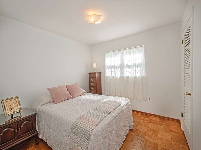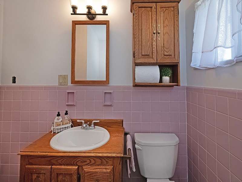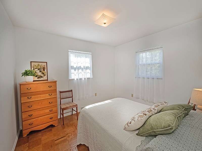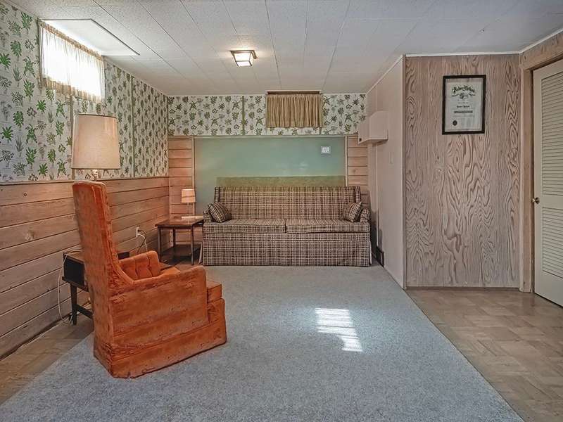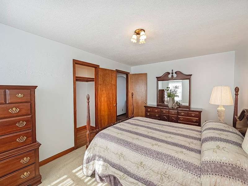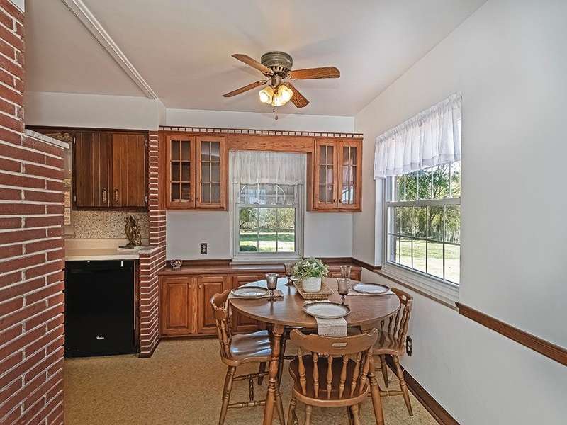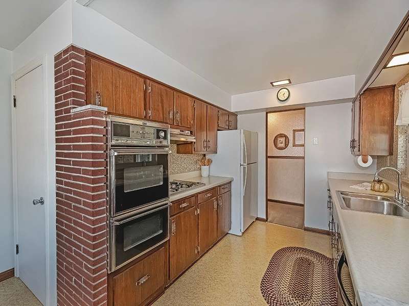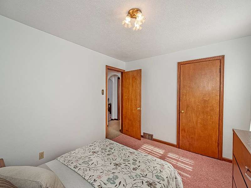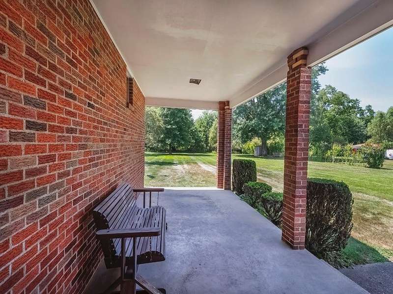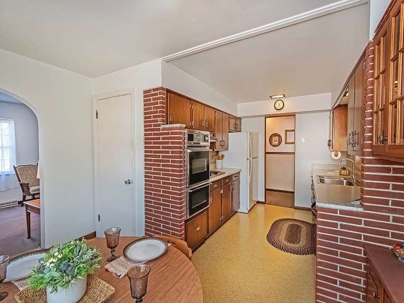 Welcome to this beautifully maintained 4-bedroom, 2-bath ranch that blends comfort, charm, and thoughtful design. The interior has been refreshed with wallpaper removed and walls freshly painted throughout the living room, kitchen, bedrooms, and baths. Gleaming hardwood floors, preserved beneath the carpet, are ready to be uncovered and admired. The galley kitchen features solid wood cabinets and opens into a dining area with seating for six, a charming built-in, and picturesque backyard views. The inviting living room is ideal for relaxing or gathering with friends, while the retro-style lower-level with built-in shuffleboard add a fun, nostalgic twist. All bedrooms are generously sized, and storage is abundant throughout. Two laundry rooms, one on each level, plus a single-car garage make everyday living effortless. Outside, enjoy a lovely covered front porch and a matching expansive patio overlooking a level, park-like lot framed by peaceful woods. Perfect for you to call home!