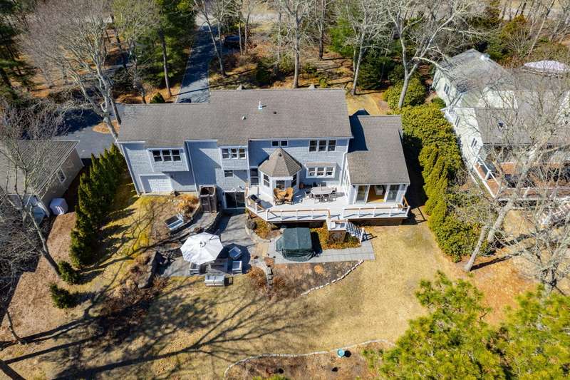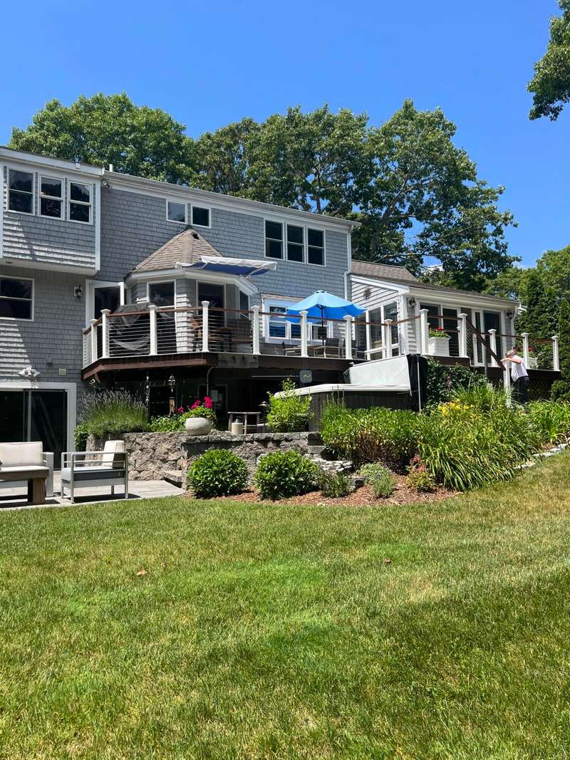 Standing high above the picturesque Childs River, 38 Rivers Edge Road is the ultimate Cape Cod waterfront retreat. This stunning home offers over 3,600 square feet of beautifully designed living space, where nearly every room is graced with serene water views. With four spacious bedrooms and four baths, there is plenty of room for family and guests to relax and enjoy the coastal lifestyle.Step inside to find an open and inviting layout, where natural light pours through large windows, highlighting the seamless blend of comfort and elegance. The kitchen and dining area flow effortlessly onto a sprawling deck, the perfect place to take in the beauty of your surroundings. Outside, your private backyard oasis awaits. Nearly an acre of land stretches down to the water, offering one of the most desirable waterfront settings in the neighborhood. Lounge on the deck, gather on the patio, soak in the hot tub, or rinse off after a day on the water in the outdoor shower. Kayak racks, hammocks, an