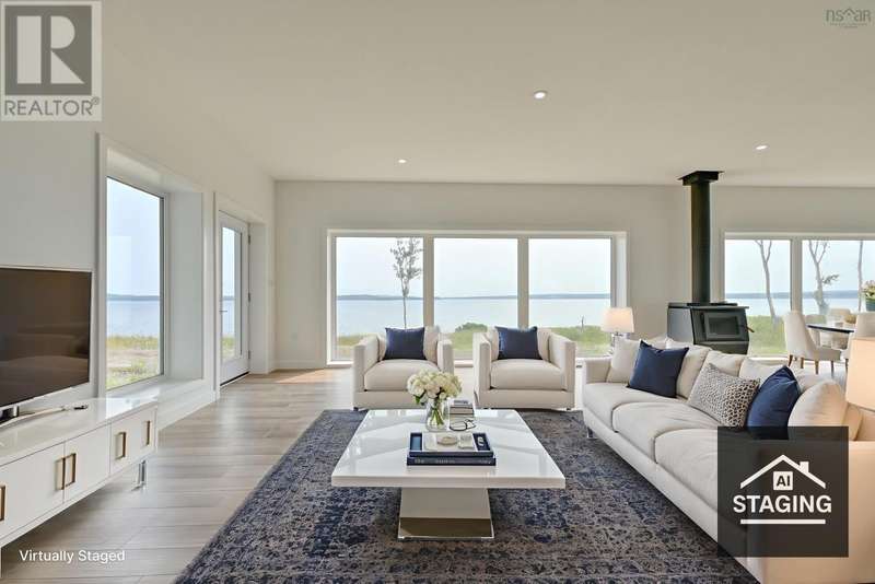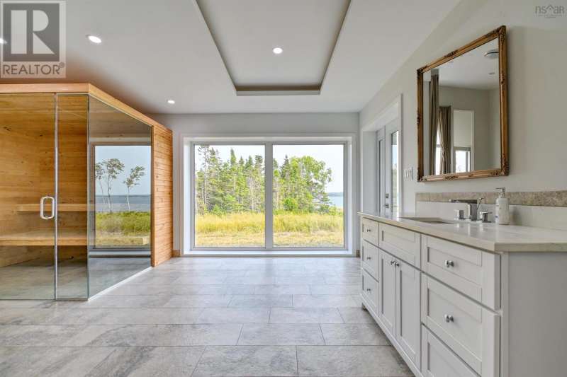 Exclusive private lakefront estate with 1.26 km of pristine Bras dOr Lake shoreline and a private sandy beach. This custom-built 5,000 sq ft luxury bungalow, completed in 2024, is thoughtfully designed for effortless one-level living, with breathtaking lake views from every window. Spanning 35.5 acres, the property is divided into 12 waterfront parcels, ensuring unparalleled privacy. Ideally situated just 40 minutes from Sydney and 45 minutes from Port Hawkesbury and the mainland, with three renowned golf courses within easy reach. This bright, sun-filled, lakefront modern-style home is exceptional, offering countless features. The open-concept design seamlessly connects the kitchen, dining, and living areas, making it perfect for entertaining or relaxing with family while enjoying stunning views of Bras d'Or Lake. The open concept layout allows you to enjoy the lake view from all areas Enjoy the convenience of entering your home from the attached triple car garage, especially during the colder months, with direct access to your mudroom, shower and pantry. Kuuma Indoor Sauna. Generator-Generac RD048Kw. This estate has so much to offerjust book your viewing and start living your dream! (id:2494)