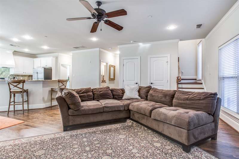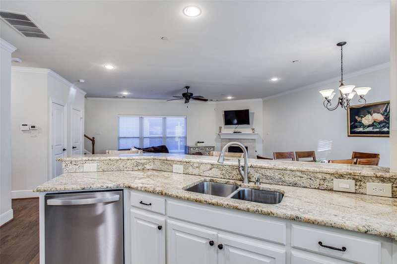 Wonderful, beautifully appointed rare one owner 4 bedroom 3.1 bath University Park three story condo in a fantastic location close to Highland Park High School and all the amenities that the Park Cities offers including Germany Park, the shops and restaurants along Lovers Lane and Highland Park Village. The home is zoned to coveted Bradfield Elementary. The private first-floor bedroom and bath is a perfect bedroom retreat or office. The second floor is an entertainer's dream with a fabulous kitchen equipped with white cabinets, granite countertops, a breakfast bar and stainless steel appliances open to the spacious dining room and living area with a fireplace. The covered balcony provides an outdoor space year round. The primary suite and 2 bedrooms with an adjoining full bath on the third floor offer the upmost privacy. Gleaming hardwoods. Spacious 2 car garage and plenty of storage. An incredible offering providing the most sought-after convenient lifestyle!