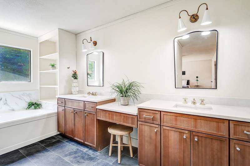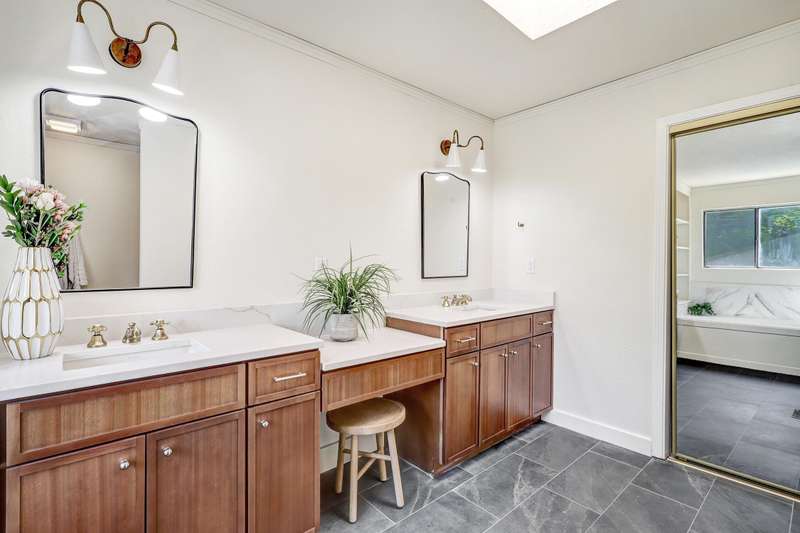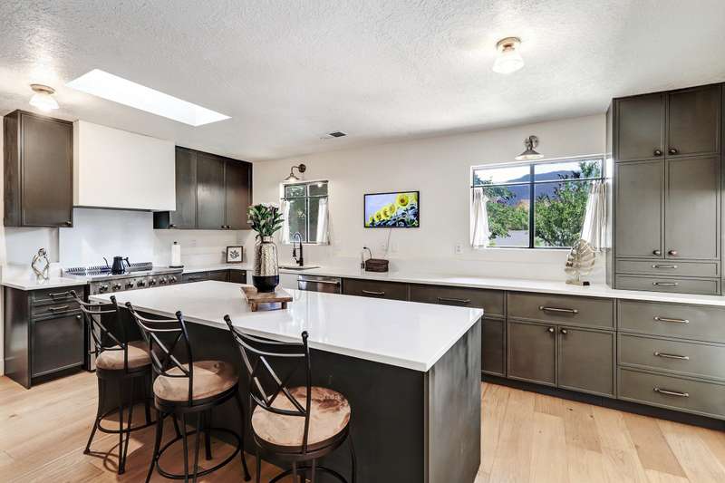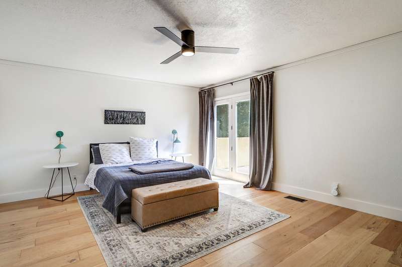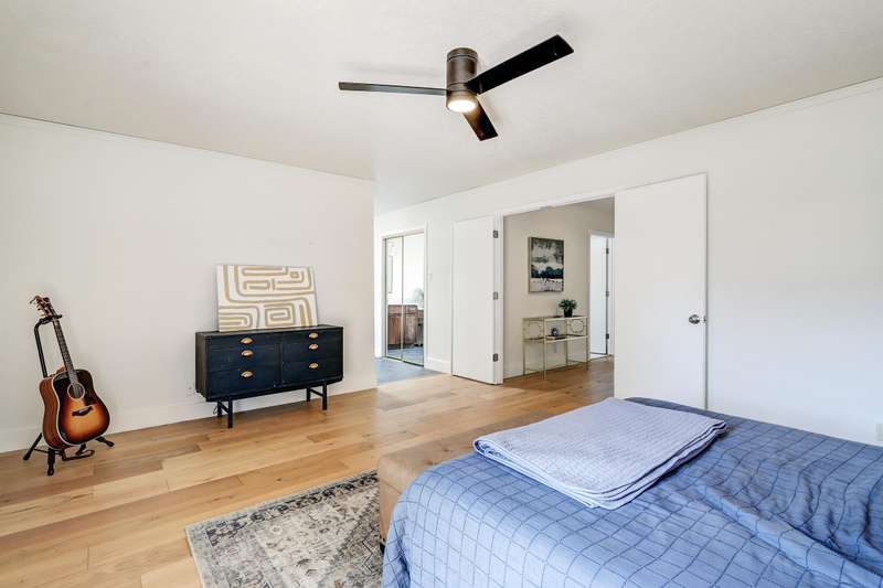 Price Reduced! Stylish and sleek home on a Cul De Sac lot in Heritage East subdivision. Impressive interior remodel showcases a cooks dream kitchen with massive island, stone counter SS appliances, counter space and storage galore newly replaced modern cabinetry. Primary bedroom has a private balcony with views. All three bathrooms are tastefully remodeled. Engineered wood flooring and tile throughout. Spacious backyard with mature landscape and BACKYARD ACCESS. 2 car garage has additional storage space. You'll love this comfortable and functional floor plan with generously sized bedrooms and two large living spaces plus a designated dining space/ or use it as an office.
