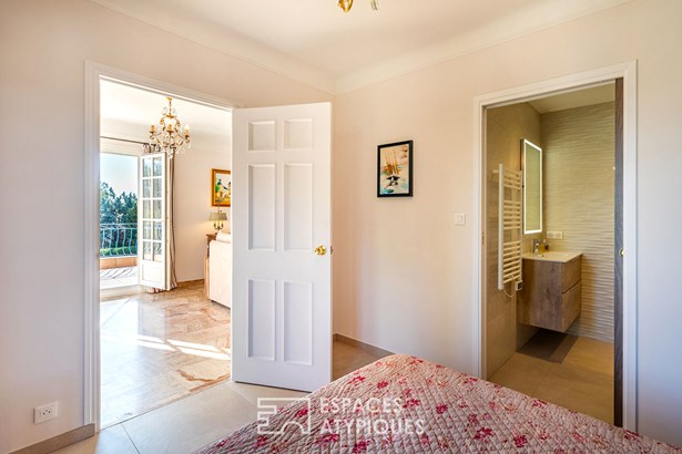 On this same level, a communicating apartment, also accessible by a separate entrance, has a living room with terrace and sea view, a kitchen, two bedrooms and two bathrooms, offering a perfect solution for entertaining or for multi-generational projects.