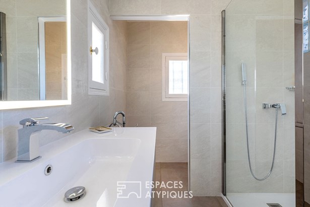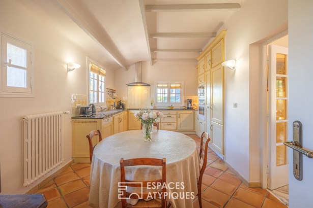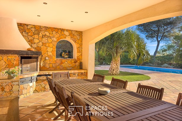 A reception kitchen opening onto a covered terrace, with built-in barbecue, completes this friendly place, designed to receive in complete serenity and fully enjoy shared moments.