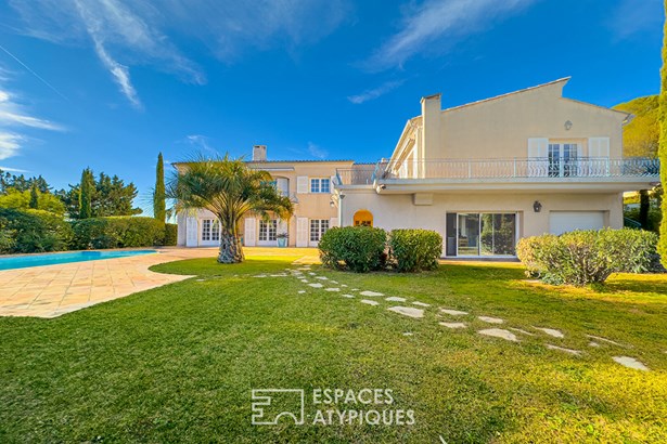 Located on the heights of Boulouris, in Saint-Raphaël, this exceptional country house benefits from a peaceful and privileged residential setting. Nestled in a cul-de-sac, it offers rare tranquility while remaining close to essential amenities.