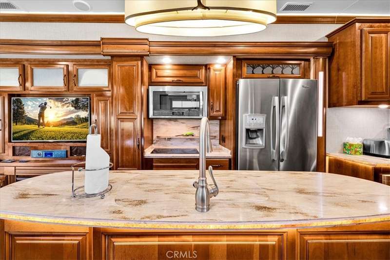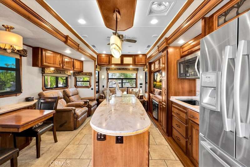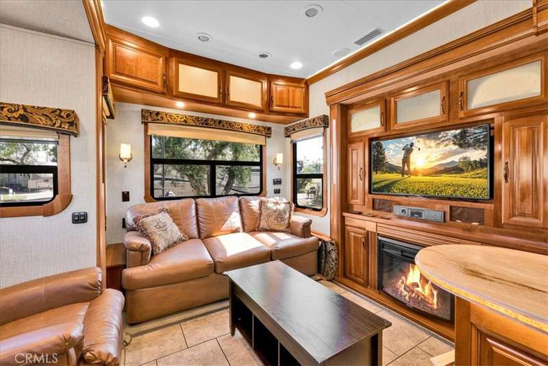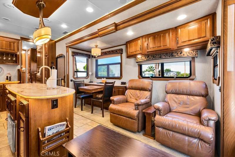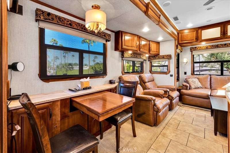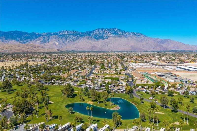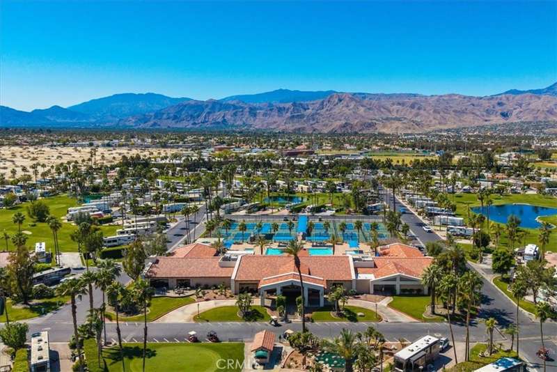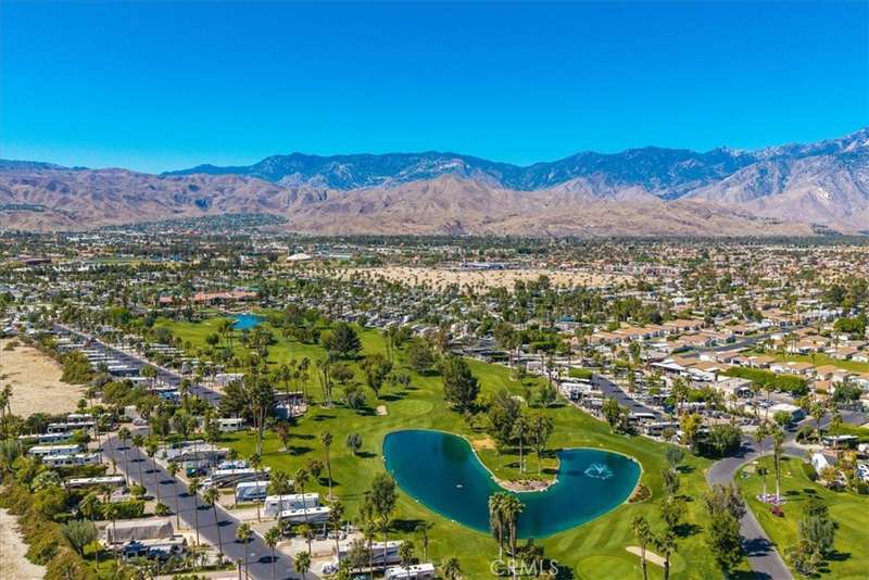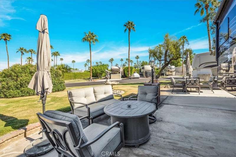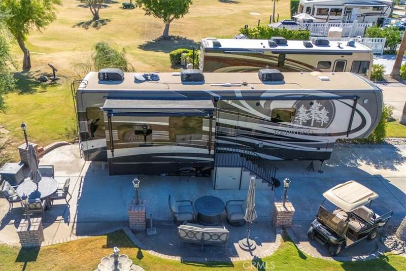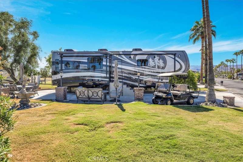 Beautiful Premium Expanded Corner Lot with Luxury Fifth Wheel & Resort Amenities! Discover this premium, low-maintenance expanded corner lot with a peaceful fountain view, located on the 8th tee box of the "Big 18" golf course in the vibrant, guard-gated Outdoor Resorts Palm Springs RV Resort Community. Included is a 2016 Crossroads Redwood Fifth Wheel, a stunning home-on-wheels offering residential quality finishes throughout -- tile flooring, leather sofa and dual recliners, fireplace, flat-screen TV, and Jensen surround speakers. The open kitchen boasts granite countertops, full backsplash, center island, real wood cabinetry, electric stove, dishwasher, stainless-steel residential refrigerator, and a coffee & wine bar area. Enjoy meals at the wood dining table for four surrounded by windows with pull-down shades that fill the space with natural light. The king-size bedroom provides abundant wardrobe and drawer space, while the spacious bathroom/dressing area features dual sinks, large shower, and two storage areas (one plumbed for a stackable washer and electric dryer). A cedar-lined closet adds an elegant touch. Step outside to your luxurious patio retreat, complete with a love seat, two swivel chairs with thick cushions, firepit table, dining table for four, two umbrellas, and an additional firepit table -- perfect for relaxing or entertaining under the desert sky. A reupholstered Club Car golf cart with cover is also included in this perfectly priced package. Beyond your lot, the resort offers an unmatched lifestyle on 137 beautifully landscaped acres, featuring:27 holes of executive golf, 10 tennis courts and 13 pickleball courts, 8 sparkling swimming pools, fully equipped state of the art fitness center, cafe, on-site salon/barber shop, two clubhouses hosting year-round activities, events, and entertainment. Whether you're seeking an active social scene or a peaceful retreat, Outdoor Resorts Palm Springs delivers the best of both worlds. This is more than just a lot--it's a lifestyle!