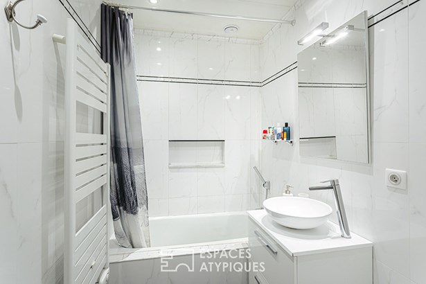 Nestled in the heart of a renovated former estate, this 47 sqm duplex loft (Carrez law) offers an atypical and contemporary living environment, with high ceilings, open spaces, and a fluid layout. Located in a secure condominium, this unique property seduces with its resolutely modern ambiance and its meticulous features.