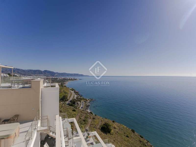 Lucas Fox presents this exclusive duplex penthouse, completed in 2021, just five minutes from Nerja and Torrox. This impressive high-end duplex penthouse is both elegant and functional. With an impeccable layout , it offers three bedrooms, two bathrooms and, above all, four terraces totalling 156 m², ideal for enjoying the sun and panoramic views. The main bedroom features an en-private bathroom and access to a perfectly oriented private terrace, ideal for enjoying the sun all day long. The spacious living area and open kitchen open onto a spacious terrace, perfect for al fresco lunches or dinners. From here, you can access the exclusive rooftop terrace, an incomparable place to relax or entertain guests in a sophisticated atmosphere. This penthouse is part of a top-class residential complex, designed to offer maximum well-being and comfort. It features a spa area, a fully equipped gym, an indoor and exterior swimming pool, as well as exclusive spaces such as a meeting room with billiards and table football, a private cinema and a games room for the little ones. This property also includes a parking space and a storage room. Contact us to schedule a visit and discover this unique penthouse.