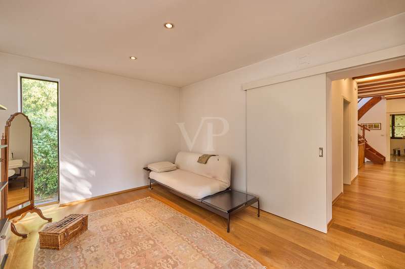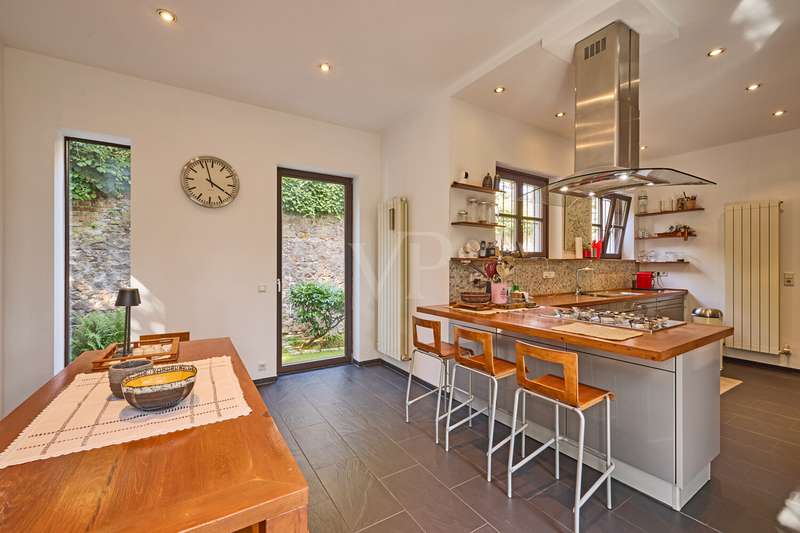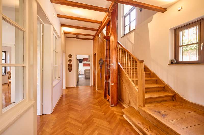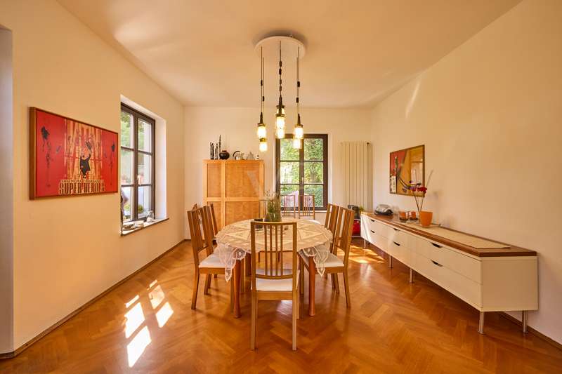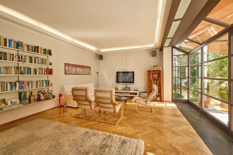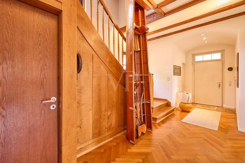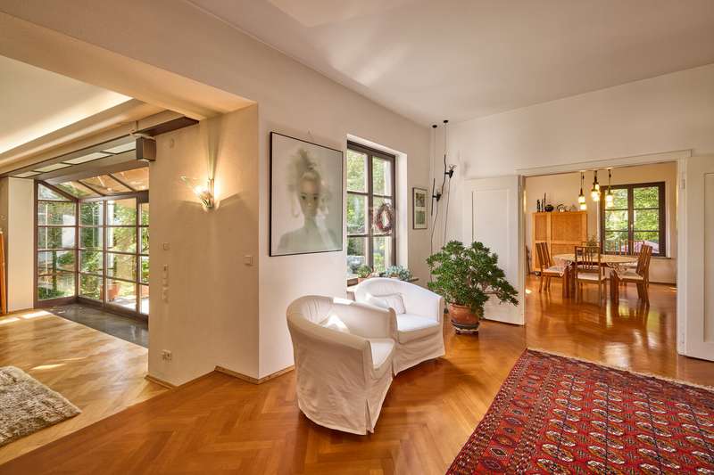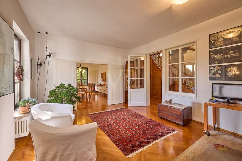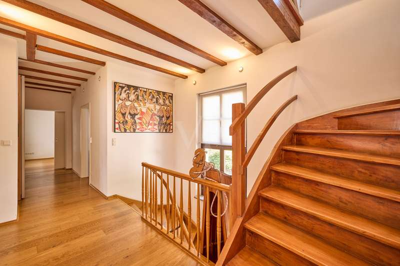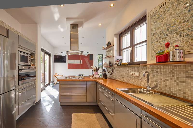 **Exclusive villa near Mathildenhöhe - Stylish living ambience on a spacious plot** Welcome to a rare opportunity to acquire a well-kept villa from 1934 that combines historical charm with modern living comfort. This house is not only an expression of timeless architecture, but was last modernized in 2024 and presents itself in a very well-kept condition. **Living space and room layout** With a living area of approx. 304 m² and a total of 8 rooms, the villa offers plenty of space for families or discerning couples with individual space requirements. The floor plan impresses with its clear lines and bright rooms. On the first floor, you will find prestigious living spaces with high-quality parquet flooring. The living and dining area opens out onto the sun terrace and garden, creating a seamless transition between indoor and outdoor areas. **Equipment and special features** The kitchen offers modern equipment and has been extended by a high-quality extension, including an additional terrace - perfect for cooking together and cozy outdoor meals. Five bedrooms offer individual retreats for all residents, while four high-quality, modernized bathrooms ensure comfort. On the upper floor and top floor, each bathroom is equipped with a bathtub with whirlpool function. The converted top floor is ideal as a work area, guest room or for creative activities. The villa has a central heating system that provides cozy warmth in all rooms. The high quality of the fixtures and fittings is particularly noteworthy: from the stylish interior to the high-quality fittings in the bathrooms and the carefully selected building materials, the overall concept has been well thought out. **Plot and building** The approx. 675 m² plot can be used for a variety of purposes and has been lovingly landscaped. Several terraces - including a spacious roof terrace - invite you to spend sociable hours outdoors. The garden with its mature trees and plants creates a pleasant atmosphere at any time of year and offers various retreats. The hobby/storage room, laundry room, pantry and sauna are located in the basement of the villa. **Location and surroundings** The property is located in the immediate vicinity of the Mathildenhöhe, a Unesco World Heritage Site known for its cultural significance and architectural quality. From here, you enjoy excellent connections to Darmstadt city center as well as short distances to schools, shopping facilities and public transport. Despite its proximity to the city, the beautifully landscaped garden guarantees privacy and space to relax. **Conclusion** This villa combines prestigious living with functional aspects and a high degree of comfort. Its unique location on one of the most important cultural monuments in the region, the very well-kept structural condition and the generous living space make the property an attractive domicile. Convince yourself of the many possibilities - we will be happy to arrange a viewing appointment for you.