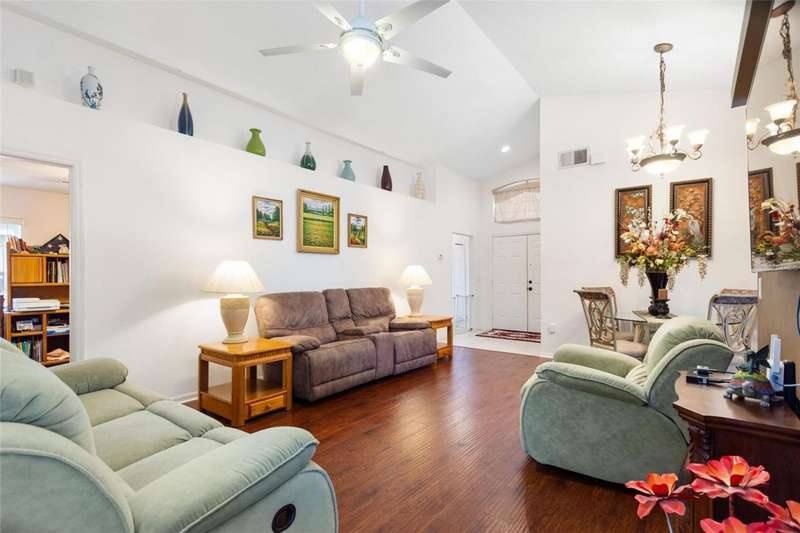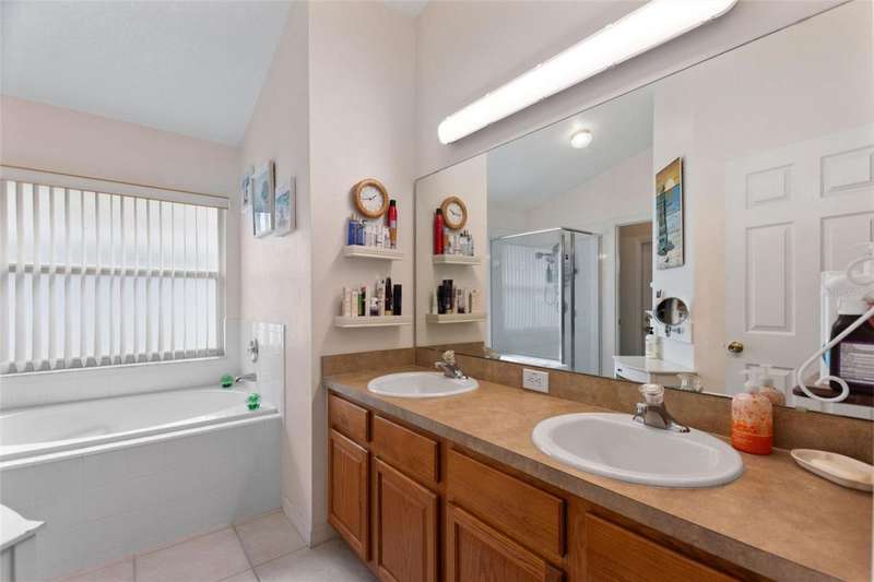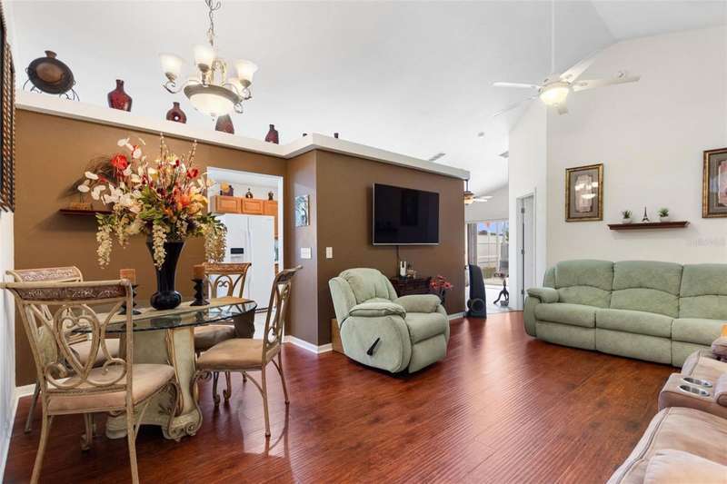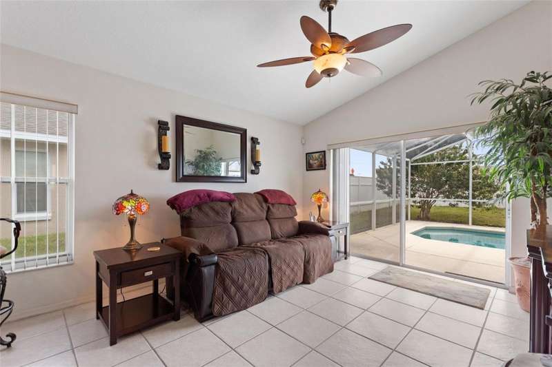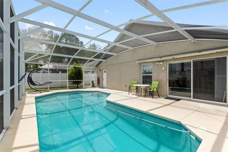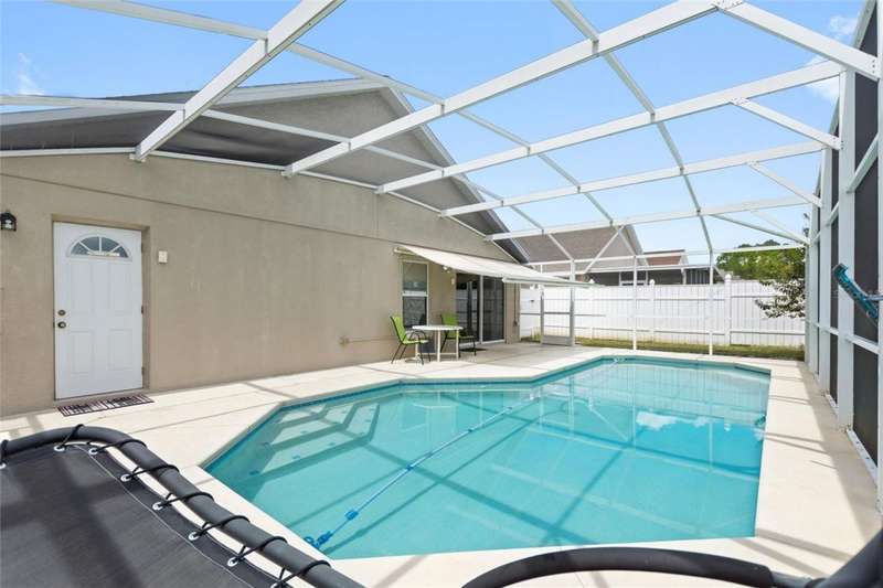 Under contract-accepting backup offers. Gorgeous 4 Bed, 2 Bath ONE OWNER POOL HOME located in the desirable Florida Pines subdivision! This home is perfectly situated just off Hwy 27 convenient to everything Davenport has to offer including Publix, Wal-Mart, Lowe's, and tons of shopping and restaurants! Embrace true Orlando living with an easy drive to Disney, SeaWorld, and Universal Studios! This ONE OWNER home has been well cared for including a NEW ROOF in 2018. When entering the home you're welcomed by the tasteful updated vinyl wood floors that span throughout the living room and primary bedroom. The living area is spacious with tall vaulted ceilings and easily accessed from all 4 bedrooms, paired with a formal dining area, this is a great place to spend time. The kitchen is near the living area and offers a breakfast nook, tons of counter and cabinet space, and a lovely view over the kitchen sink to the pool deck. Head out to the pool deck through an additional living area, perfect for indoor-outdoor living. The primary bedroom is airy with vaulted ceilings, complete with a large en-suite bathroom with a stall shower, garden tub, and convenient door to the pool deck! Two guest bedrooms are in the front of the home along with a guest bathroom, while the 4th bedroom is located near the primary, great for a bedroom, nursery, office, and more! The EXTENDED POOL DECK is exactly what you're looking for to enjoy the beautiful Florida weather, with plenty of room for grilling, swimming, and relaxation - a retractable Sunsetter awning also provides great shade to cool off on warmer days. One owner homes like this don't come up often, schedule your private showing today!