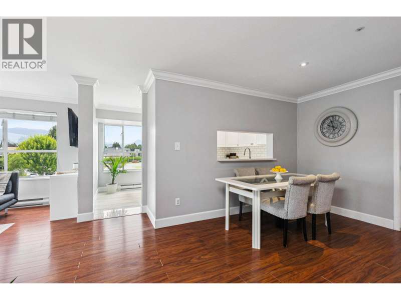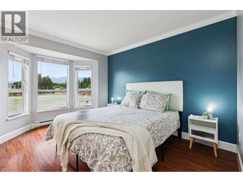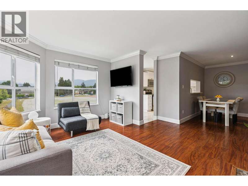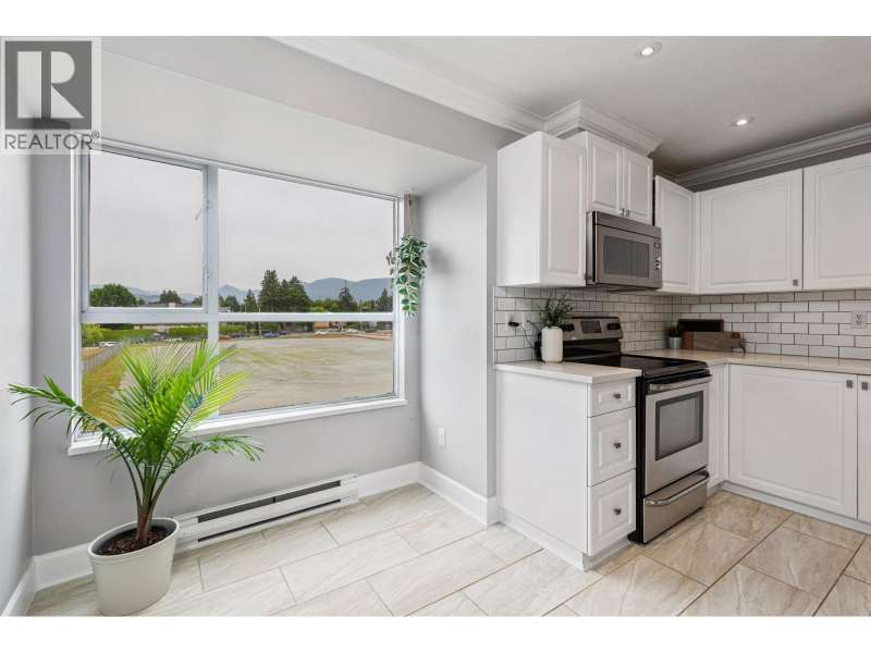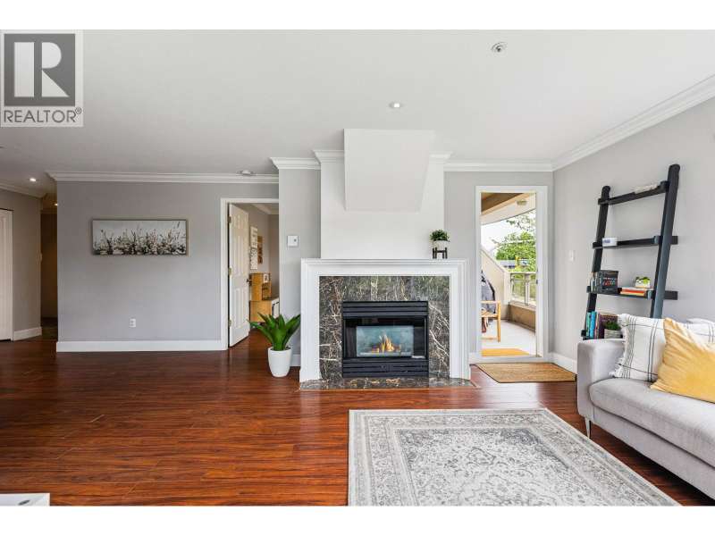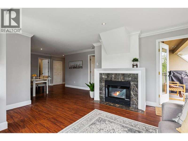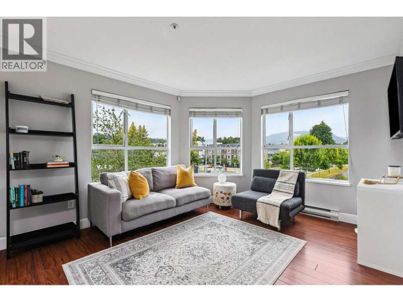 Welcome to Shaughnessy Manor, a boutique 36-unit complex! This bright and beautifully maintained 2 bed, 2 bath + den/flex space corner unit offers 1,005 square ft of living with mountain views. The spacious living room features a cozy gas fireplace and opens to a large covered balcony-perfect for year-round BBQs. The white kitchen boasts a stylish tiled backsplash and built-in microwave. Bedrooms are thoughtfully placed on opposite sides for privacy; the primary has a walk-in closet and 4-piece ensuite. Comes with two side-by-side parking stalls and one storage locker. Well-managed building with recently updated patios. Walk to brand new community centre, parks, schools. Quick access to West Coast Express and Hwy 1. (id:58403)
