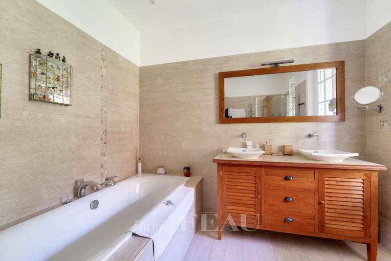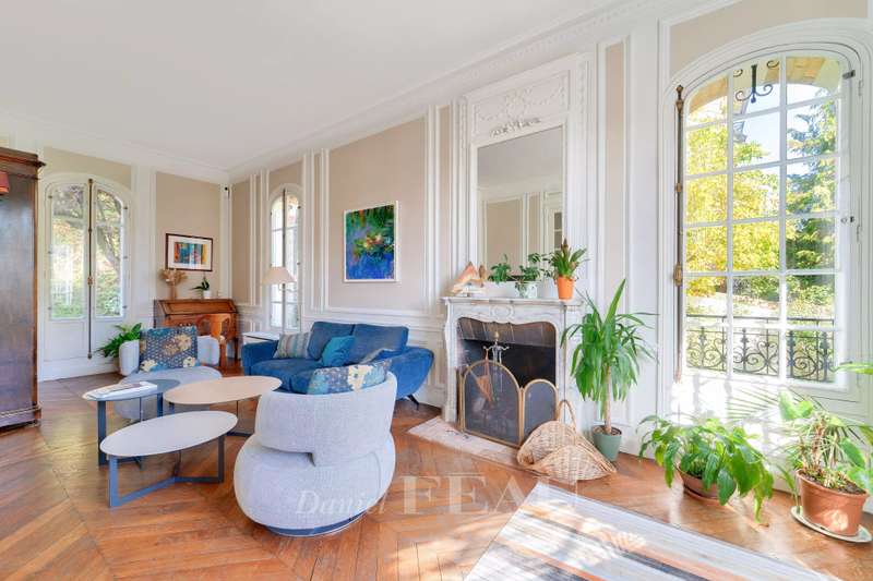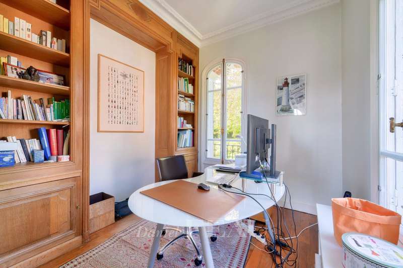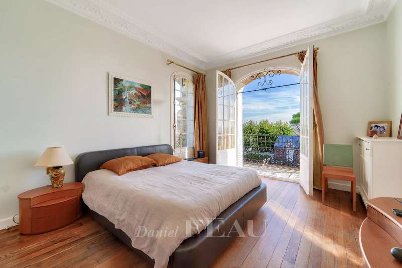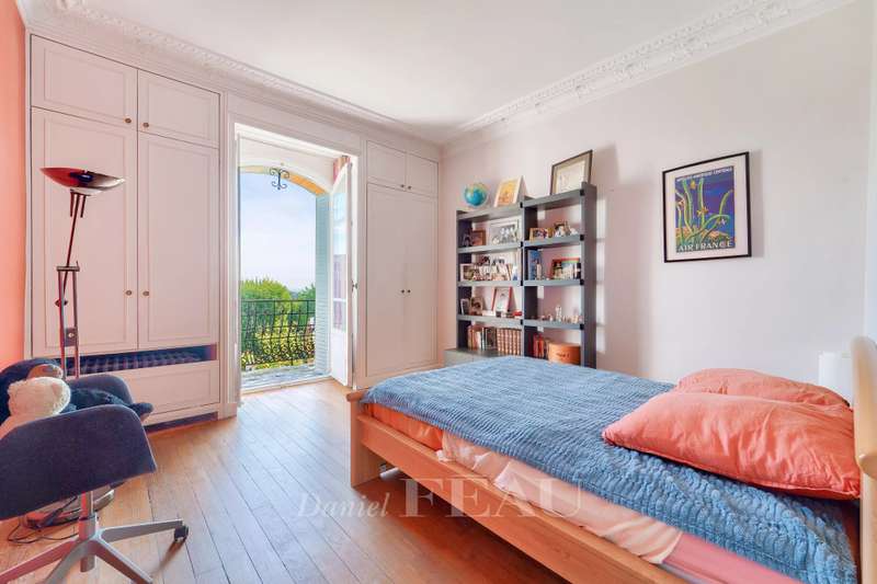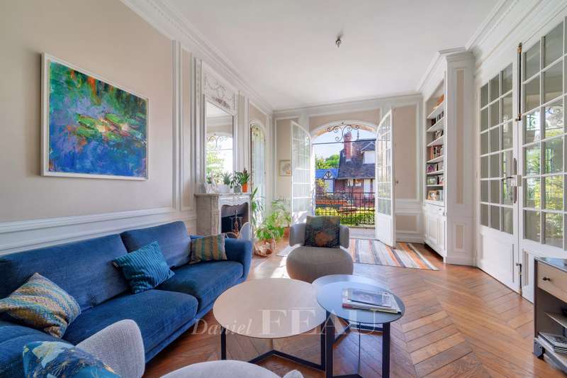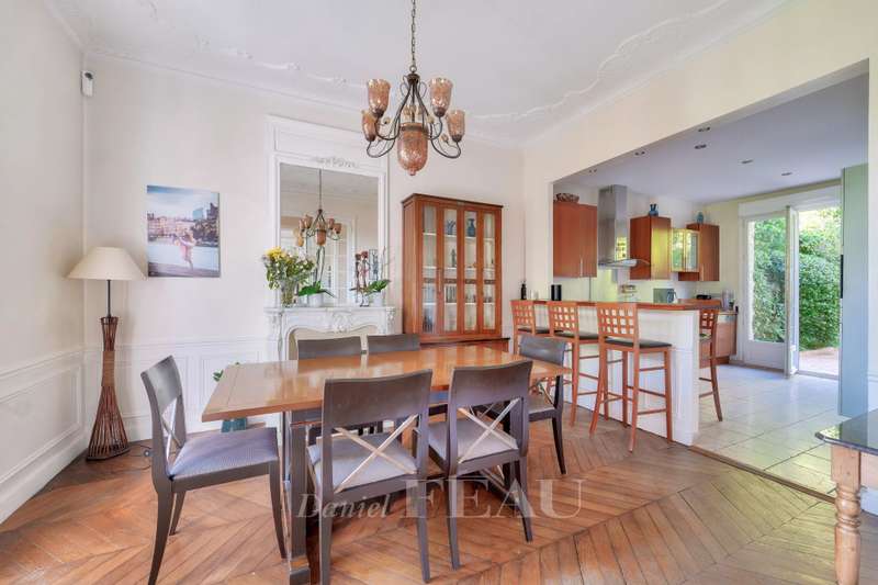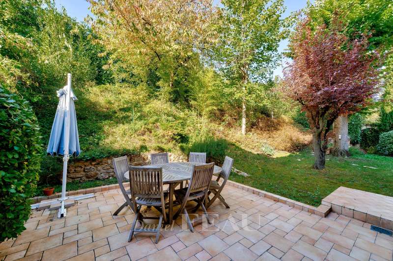 Val d’Or neighbourhood. This elegant early 20th century property in perfect condition offers 195 sqm of living space. A spacious entrance hall leads to a living/reception room, a spacious kitchen with dining facilities, a dining room opening onto a terrace and the garden, and a guest wc. Upstairs are two bedrooms (one with an adjacent study), a bath/shower room and a shower room. The top floor comprises two further bedrooms enjoying a view of the capital, a bathroom, a study and a compact fifth bedroom. On a basement with a utility/boiler room, two storage rooms and a wine cellar. With a separate garage. In a convenient location near the stations and schools and a five-minute walk from the shops.