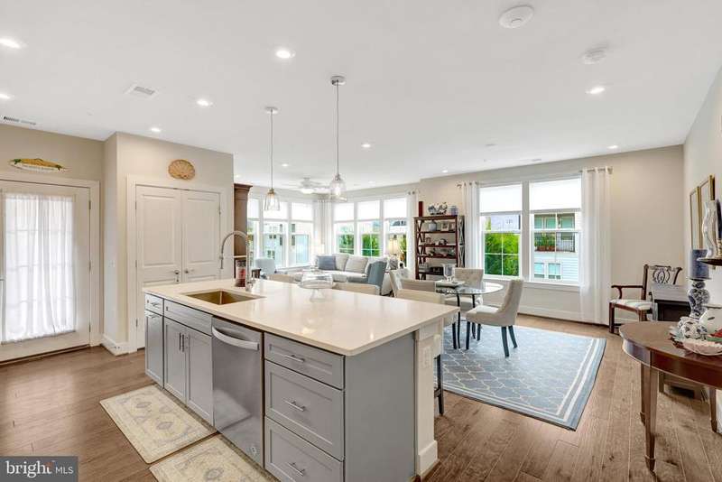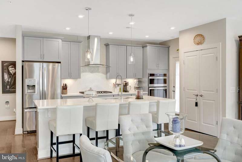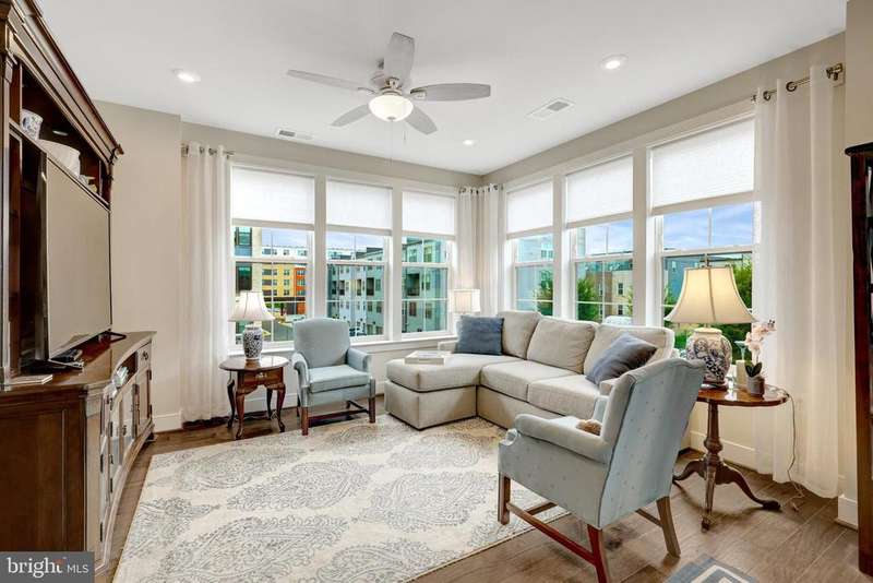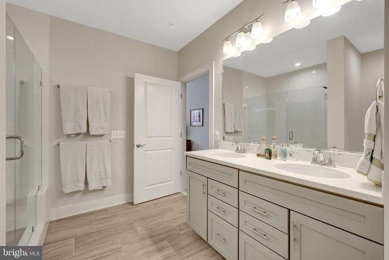 Two dedicated garage parking spaces set this home apart. Combined with a compelling new price, its easily one of the neighborhoods best values. This stunning 2 bedroom, 2 bath, corner unit condo, where windows on two sides fill the space with warm, natural light is a stunner! With 9' tall ceilings and an open floor plan, this home feels bright, spacious, and perfect for both everyday living and entertaining. The heart of the home is the gourmet kitchen, featuring a large center island w/seating for 4 and stylish pendant lighting, a 5-burner cooktop, wall oven, built-in microwave, 42"cabinets, attractive tile backsplash, thoughtful touches like built-in trash/recycling, and a spacious pantry. Just off the kitchen, a private balcony is perfect for morning coffee or evening relaxation. The open living and dining rooms flow together seamlessly, creating a welcoming space for gatherings. The primary suite is a true retreat, complete with an oversized walk-in closet, a double vanity, and a large frameless walk-in shower. The second bedroom is sunny and spacious with its own large closet, while a hall bath and separate laundry room add convenience. Enjoy the safety and convenience of a secure building with an elevator. Commuting is easy with the Innovation Station metro just 1 mile away!