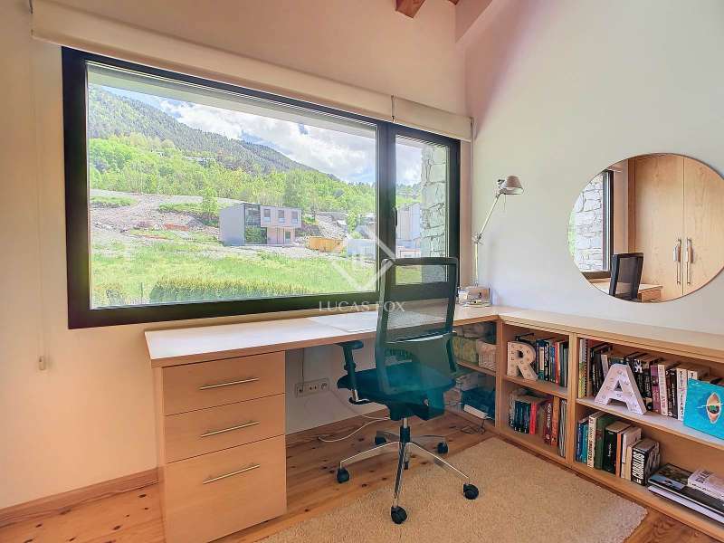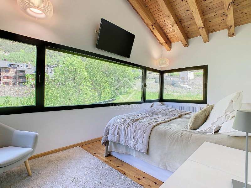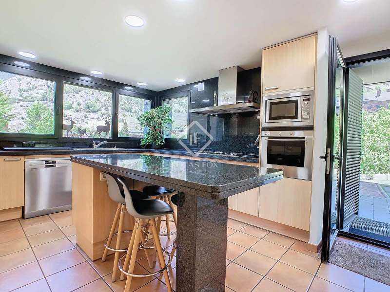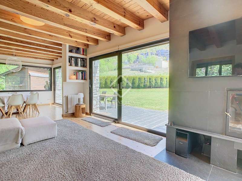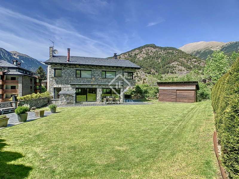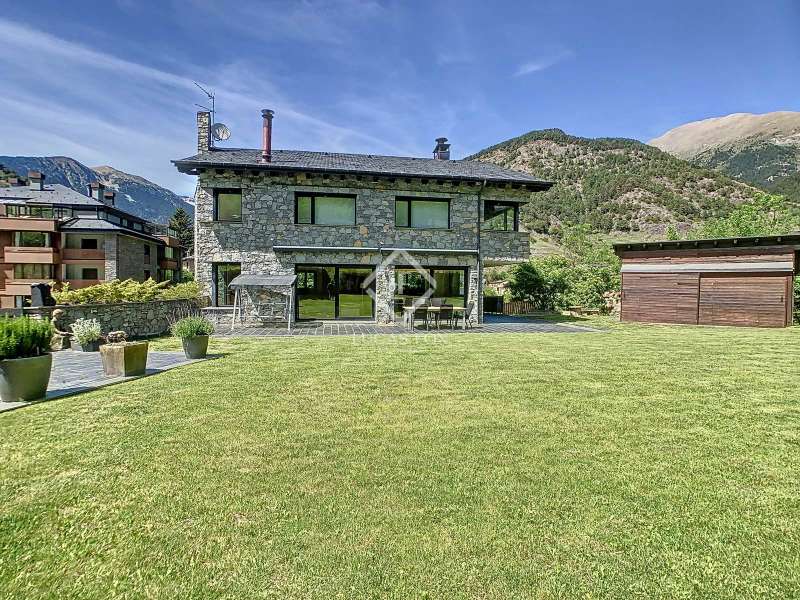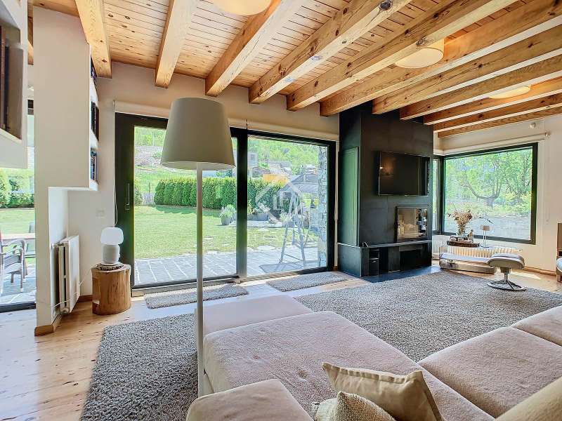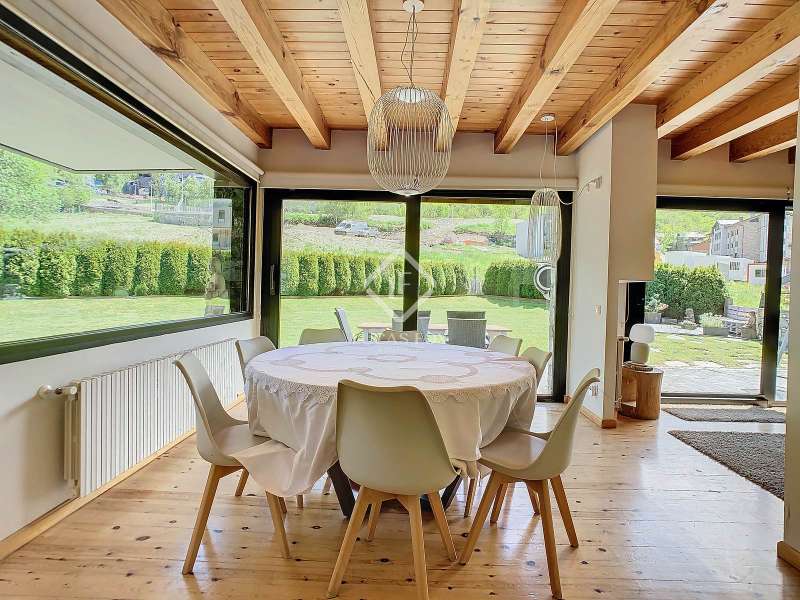 Lucas Fox presents this fabulous mountain home located in one of the most sought-after areas of Ordino, an ideal location for its tranquility, with incredible living spaces, large windows, and wonderful views. The property sits on a spacious 701 m² plot , with distinct outdoor areas to take advantage of the climate and enjoy al fresco dining with all the amenities. This property has a built area of 418 m² and a 360 m² garden, with a southwest-facing location that provides natural light for most of the day in all rooms. The home is accessed via the ground floor, which features an entrance hall with a large winter wardrobe and stairs leading to the property day area . This level also includes a four-car garage, a DIY workshop area, a storage room, a machine room, and a spacious wine cellar. The first floor offers a large living room with floor-to-ceiling windows and sliding doors access to the exterior space. Adjacent to the living room is a separate dining area with sliding doors, which leads to a large, fully equipped kitchen with high-quality appliances and a central island, as well as a breakfast area. There is also a pantry with plenty of storage space and a door leads to the exterior area. This floor also includes a double bedroom and a guest toilet. The mezzanine floor houses the night area. It features a first single bedroom suite with a private bathroom bathroom and shower, two single bedrooms that share a full bathroom with a bathtub, and the main bedroom with a private bathroom bathroom, a large dressing room, and panoramic views. Completing the floor is a fully equipped laundry area . Exterior , this charming family-friendly property benefits from a large stone barbecue, a lovely chill-out area , and a garden shed, ideal for storage. The area is completely enclosed, offering privacy and security so children or pets can play safely. This property is perfect for families looking for a quiet location with all the amenities within easy reach, such as schools, supermarkets, restaurants, and more, while still providing privacy and surrounded by natural surroundings. It's also ideal for sports enthusiasts, thanks to its proximity to the Grandvalira ski resort in the Arcalís sector. Contact us for more information or to arrange a visit.