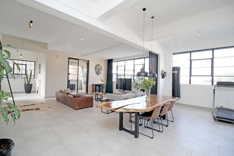 Ideal for discerning professionals - Discover the epitome of luxury living in the prestigious "Celestial Penthouse", a unique property nestled within the esteemed Urban Fox Penthouses complex in the vibrant Maboneng Precinct. Enjoy expansive living in this meticulously designed penthouse spanning a generous 204 square meters, offering unparalleled proportions and contemporary elegance in Johannesburg's CBD. This newly renovated 1st-floor luxury Penthouse features three bedrooms, two bathrooms, two toilets, a contemporary kitchen, and spacious living and dining areas. The master bedroom includes a grand open walk-in shower and a freestanding bathtub, creating a luxurious retreat within the city. The third bedroom can easily be converted to a home office or walk-in closet. The kitchen features a chef's dream setup with a sleek island, marble countertops, a gas stove, ample storage, and provisions for a washing machine and dishwasher, combining style and functionality. Step onto your expansive private balcony through large industrial steel swing doors adorned with lush plants, overlooking Main Street. Complete with a spacious outdoor braai stand, perfect for hosting intimate gatherings or to unwind after a bustling day. You can revel in breathtaking views and serene nights, removed from the bustle of Fox Street yet proximate to the lively nightlife of Maboneng. Just a block away from the Jewel City R2 Billion redevelopment in Joburg CBD, this property offers seamless access to diverse dining, coffee shops, shopping, and cultural experiences. Nearby conveniences include a Shoprite supermarket, McDonald's, Clicks, and reputable schools, all within easy reach. With readily available Ubers and public transport, proximity to Jeppe Train Station and the Gautrain further enhances connectivity. Additionally, the property includes air conditioning, an intercom system, high-speed fiber connection, electric floor heating, and comprehensive CCTV surveillance, ensuring a secure and comfortable living environment. Secure basement parking is also available. Don't miss the chance to own this extraordinary penthouse in The Maboneng Precinct. Contact us now to schedule a private viewing and envision yourself living in unparalleled luxury and sophistication at the heart of Maboneng