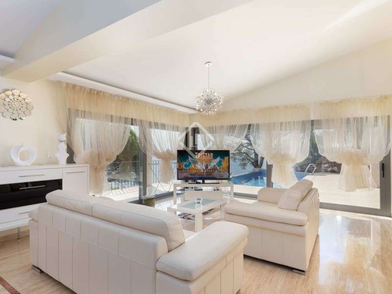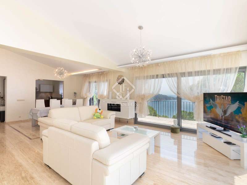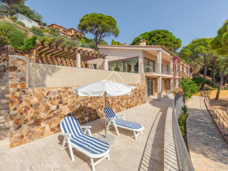 This spectacular property is located on a dramatic seafront plot in Punta Brava, one of the Costa Brava's most exclusive, luxury residential developments, situated just south of the pretty seaside town of Sant Feliu de Guíxols on the Costa Brava. The 5-bedroom property is constructed over two levels and its large plot of just under 3,000 m² affords magnificent sea views and complete privacy. The property's prime location is hard to beat. The Punta Brava estate is widely regarded as one of the Costa Brava's most exclusive and sought-after residential areas, comprising around 40 spectacular private homes all enjoying panoramic sea views and located within a short drive of the seaside town of Sant Feliu de Guíxols with its shops, restaurants, cafés, daily market and marina. The 375 m² home boasts three en-suite double bedrooms and two further bedrooms with a shared bathroom. All bedrooms enjoy direct access to a large terrace and benefit from the superb views. The open-plan kitchen and living area on the ground floor opens out onto a lovely terrace with the 26 m² swimming pool and a covered dining area. The plot has various different levels descending towards the sea with the house and pool built across the upper two levels and with further levels dedicated to the garden, with several specially constructed viewpoints from which to enjoy the wonderful sea views. The east-facing property was originally constructed in 1982 and was subsequently extended and fully renovated in 2010. The villa has a private garage with capacity for one car and additional off-street parking for several other vehicles. The heating is via hot and cold air conditioning, and solar panels are used to heat the domestic hot water. The floors are travertine marble. This is an ideal home for a buyer looking for a seafront property with exquisite views in an exclusive, peaceful and private residential area of the Costa Brava.