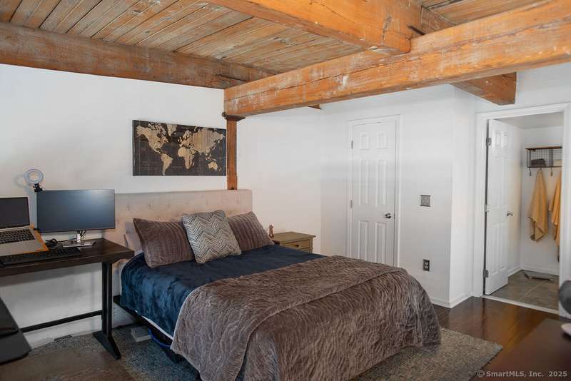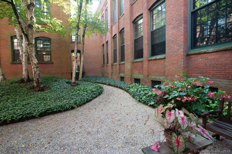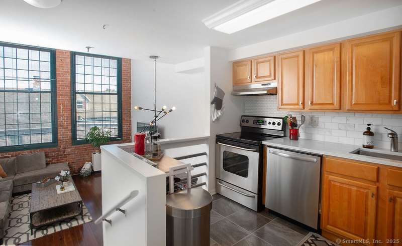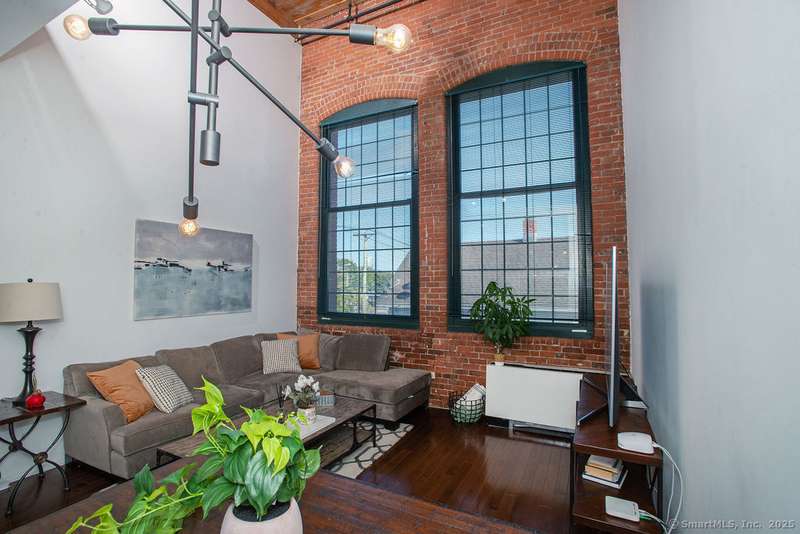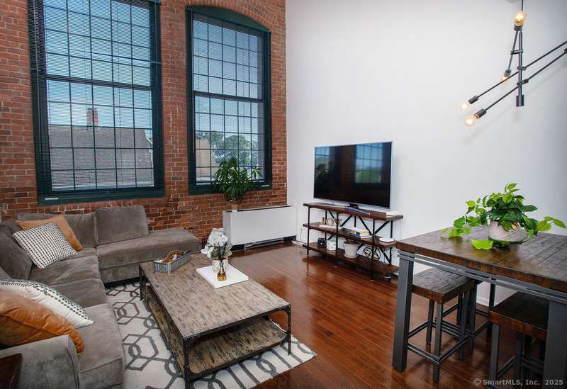 Come home to the Clocktower Close, a highly sought-after condo complex offering a prime location with easy access to I-95, the Merritt Parkway, Metro-North, Merritt 7, and vibrant SoNo. This 825 sq ft loft unit, with its chic Manhattan-inspired atmosphere, features stunning exposed brick walls, wood beams, soaring 20-foot ceilings, and dramatic two-story windows that flood the space with natural light. The owner has thoughtfully updated the space with hardwood floors on both levels, a refreshed kitchen complete with quartz countertops, marble backsplash, and a new dishwasher. The half bath has been upgraded with a new quartz counter, sink, and modern hardware. The open floor plan is accentuated by interior balconies that enhance the loft's distinctive NYC vibe. Natural light pours in through the expansive two-story windows, creating a bright, welcoming atmosphere throughout. Permitted off-street parking,on-level laundry,renovated fitness center with locker rooms and sauna,dedicated do