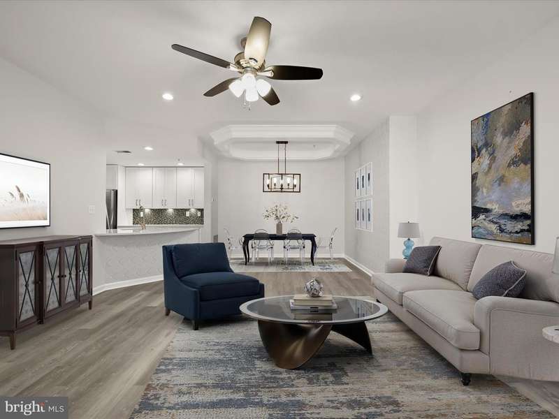 There is no special assessment, front foot benefit fees or deferred water and sewer charges. The Whitney like you have never seen! This ground-floor condominium offers a rare blend of luxury, comfort, and convenience in an unbeatable downtown Columbia location. With top-grade improvements throughout, this home has been fully renovated to showcase an upscale, boutique feel in the sought-after Whitney at Town Center community. The gated and fenced setting with a gazebo and park provides both privacy and charm, while the quiet location ensures a serene retreat just steps from the heart of the city. The open-concept living and dining area is designed for effortless entertaining, enhanced by a dropped tray ceiling with crown molding that adds elegance and character. Off the foyer, a versatile den with built-in bookshelves creates the perfect spot for a home office or reading space. The gorgeous kitchen is a true centerpiece, featuring 42-inch soft-close white cabinetry with under-mount lighting, quartz counters, a tile backsplash, stainless steel appliances, and a pantry. Just off the kitchen, a spacious laundry room with extra storage connects directly to the garage for everyday ease. The primary suite is a spacious retreat with a walk-in closet and a beautifully renovated bath that includes a double-sink vanity, built-in linen storage, and a spa shower with floor-to-ceiling tile and frameless glass. A second bedroom, located on the opposite side of the home for privacy, features two closets and a stylish full bath with an upgraded vanity, modern lighting, and a large-format tub and shower surround. Additional highlights include a garage with full-length driveway and open parking nearby, a front ramp, and the advantage of a ground-floor position with no steps to navigate. Living here means enjoying all that downtown Columbia has to offer. Stroll around Lake Kittamaqundi, take in concerts at Merriweather Post Pavilion, dine at countless restaurants, or shop at The Mall in Columbia. A thriving arts scene, seasonal festivals, and miles of walking trails add to the appeal of this highly sought-after location. With exceptional finishes, a peaceful setting, and a prime address, this residence is nothing short of spectacular. Please note: photos depicting furniture have utilized virtual staging.