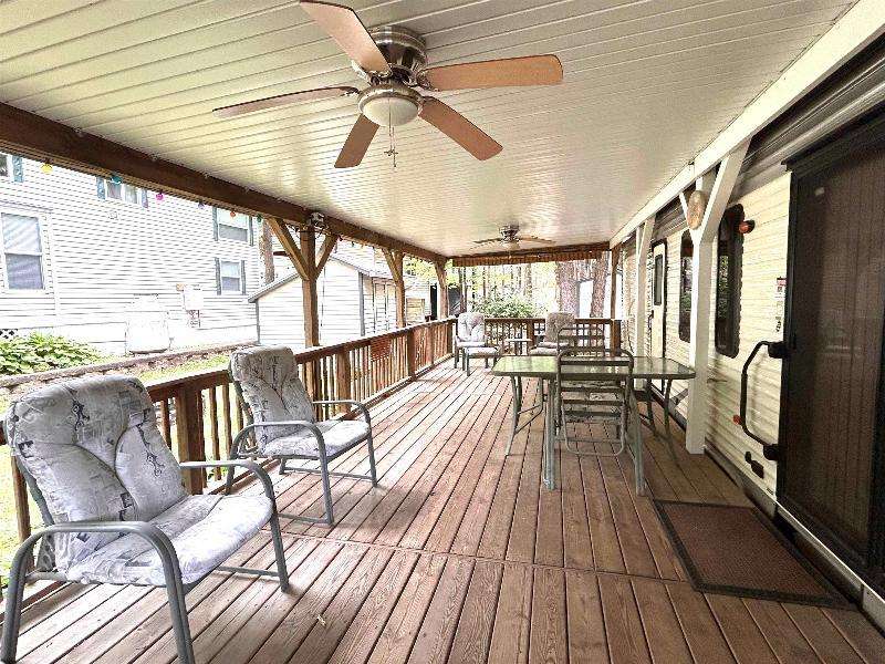 You still have time to enjoy the summer! Condo fees have been paid for the year. This 2 bedroom camper is wonderfully maintained and can sleep 8-9 people. The gigantic covered deck is amazing and has plenty of room for everyone. This retreat is affordable and ready for you. Located at Jellystone Park in Warrens, you can enjoy all of the amenities offered by that park: mini golf, outdoor movies, sandy beach, water slides, wave pool, lazy river, live music, arcade, restaurant and endless activities. Seller is including the golf cart, storage shed and more.