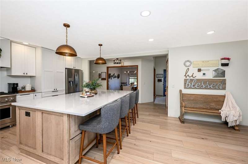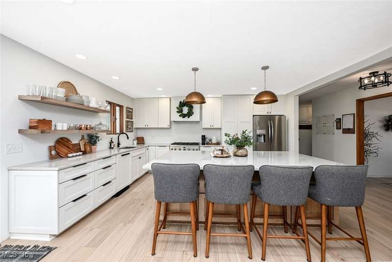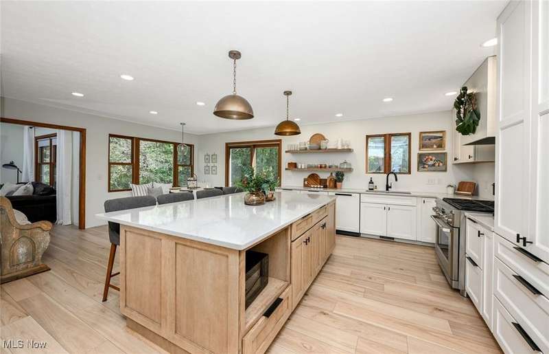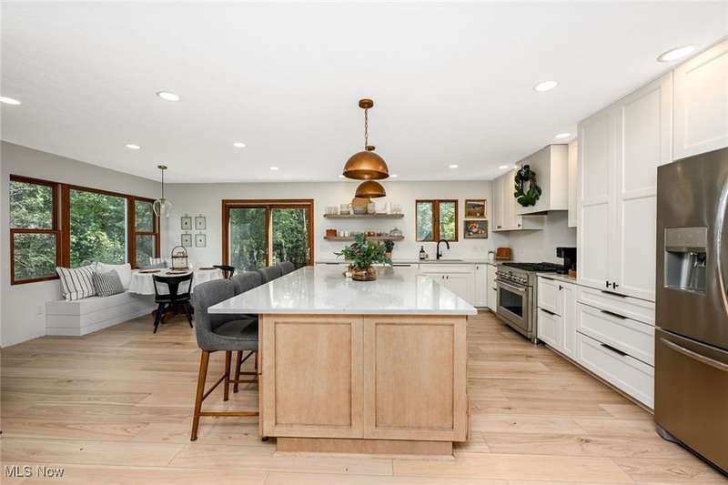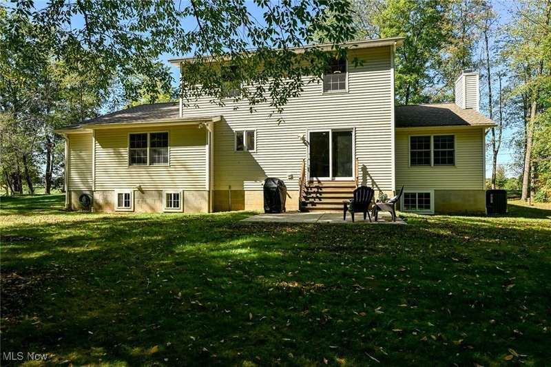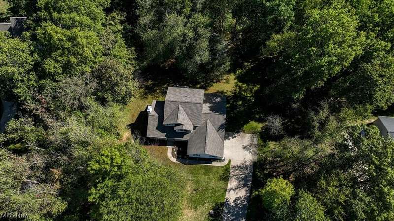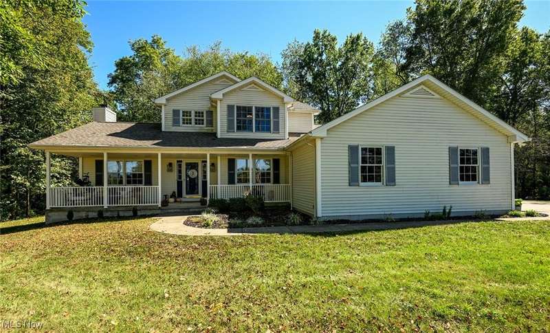 Welcome to this beautiful home on 2.5 private, wooded acres in Granger Township, located in the Highland School District. As you step into the lovely double foyer entry there is a great room with vaulted ceilings & a wood-burning/gas fireplace, with beautiful backyard views. The spacious dining room is perfect for family gatherings & opens right up to the stunning updated modern farmhouse kitchen! The kitchen boasts a large center island with plenty of storage, quartz countertops, stainless steel appliances, including a commercial-grade gas stove, recessed lighting, and abundant natural light. Enjoy the convenience of the first-floor primary suite that overlooks the private backyard and includes a large walk-in closet with custom built shelving, as well as dual sinks & a soaking tub in the bathroom. A first-floor laundry room and mudroom are located right off of the garage entry. The second floor offers three additional bedrooms and a full bath, offering plenty of space for family or guests. The finished lower level adds plenty of extra living space that includes a large rec room, an office/flex room with egress windows and a closet, a full bathroom, and plenty of storage space. Enjoy peaceful evenings on the inviting front porch with sunset views or relax on the back patio surrounded by the perfect park-like setting. There is plenty of outdoor storage with the extra deep garage with an attic and the shed in the backyard as well. Recent updates: Roof (2021), Furnace (2025), A/C (2025) LVT flooring on entire 1st floor & lower level(2023). Don't miss this move-in ready home offering space, privacy, and convenience! Schedule your private showing today!