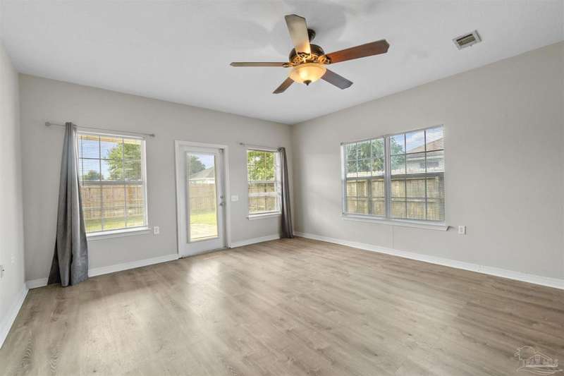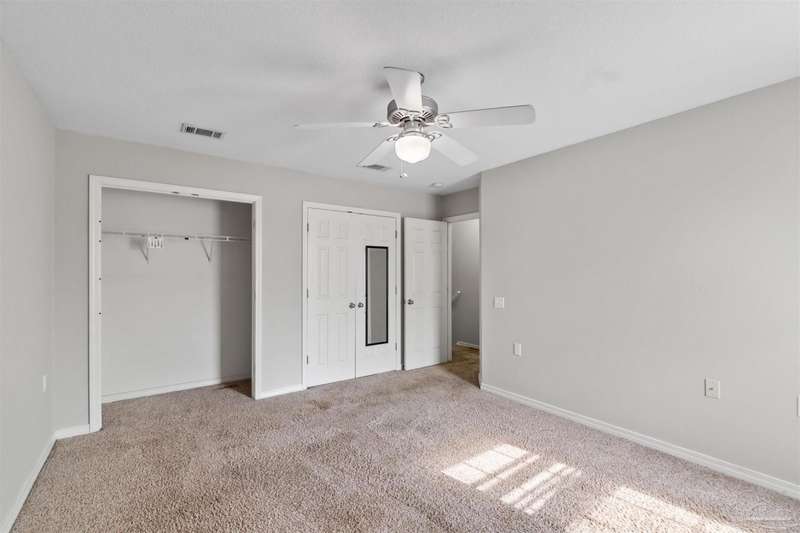 Welcome to this move-in ready home in a prime location-conveniently between both military bases, top-rated schools, beaches, the zoo, and shopping. Located in a neighborhood with sidewalks, a playground, and two serene lakes, this home is ideal. Inside, the well-designed floor plan offers plenty of space and storage. The bright, open dining area features a charming bay window that fills the space with natural light, flowing seamlessly into a functional kitchen with ample counter space, a breakfast bar, and pantry. Newer Stainless appliances! The cozy, spacious living room opens to a fully privacy-fenced backyard. The primary suite is conveniently located on the first floor, complete with a large walk-in closet, oversized tub, and dual vanities. A guest half-bath adds extra convenience. Upstairs, you'll find two generously sized bedrooms with great closet space, sharing a full bathroom. Don't miss out on this affordable home.