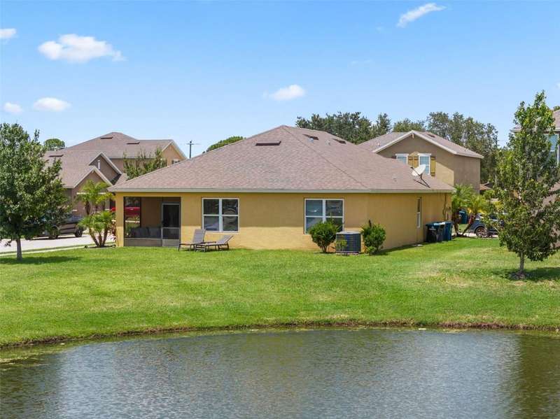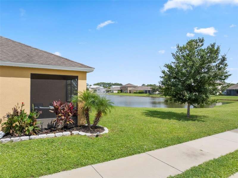 Welcome to 131 Alamere Dr SW in Palm Bay, FL - a beautiful 4-bedroom, 2-bathroom lakefront home tucked inside a quiet gated community. Built in 2016, this corner-lot property features a screened-in patio overlooking the water, a spacious two-car garage with attic storage, and extra side parking for guests. Inside, you'll find tile flooring in the kitchen, hallways, and bathrooms, plush carpet in the main living areas, a walk-in closet in the primary suite, and tons of natural light throughout. The roof is under 10 years old-great for insurance in FL-and there's even a dedicated laundry room.Located just minutes from shopping at Shoppes of Palm Bay and Hammock Landing, plus parks like Fred Poppe and Turkey Creek. And when it's time to hit the beach, you're only 20 minutes from Spessard Holland, Coconut Point, and Paradise Beach. This home blends peaceful lakefront living with everyday convenience-don't miss it!