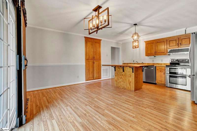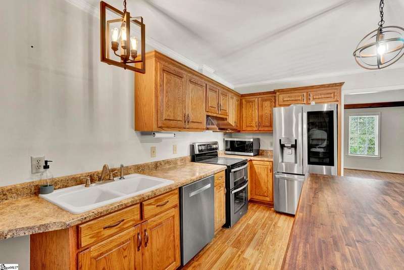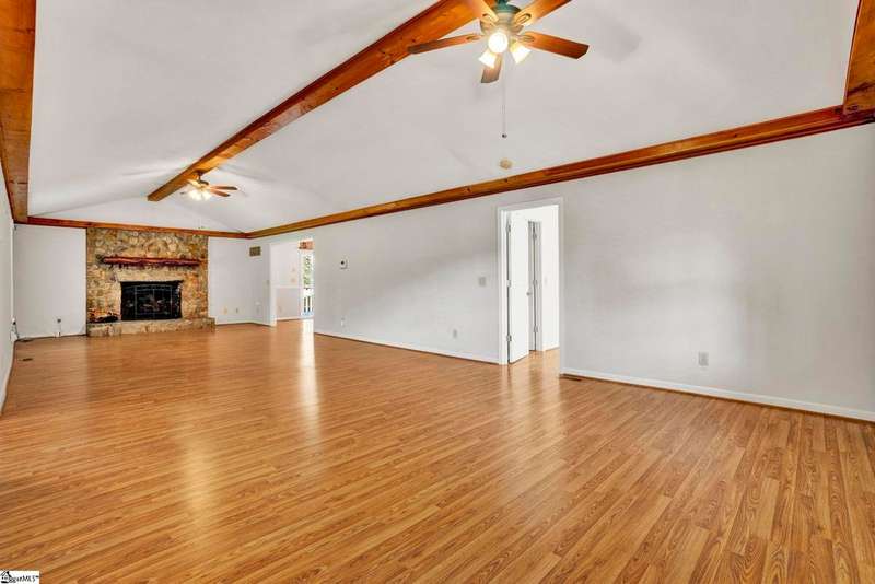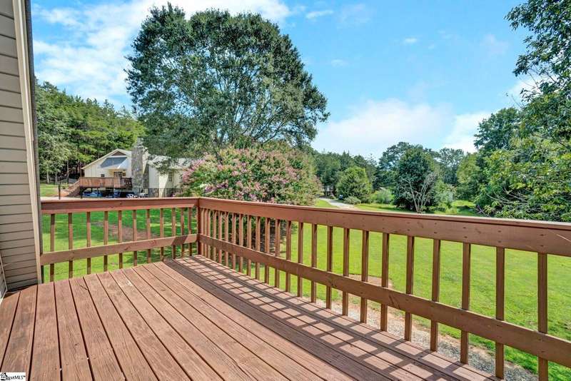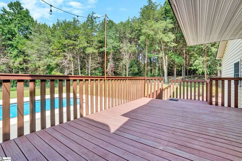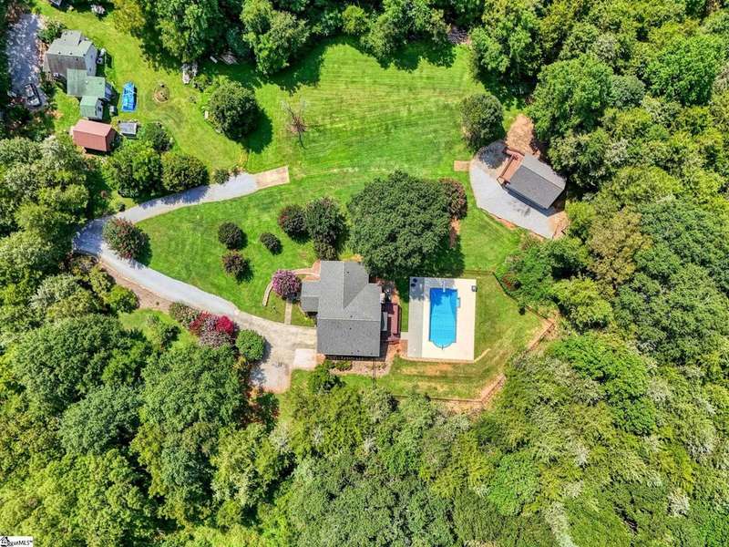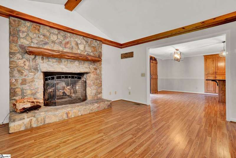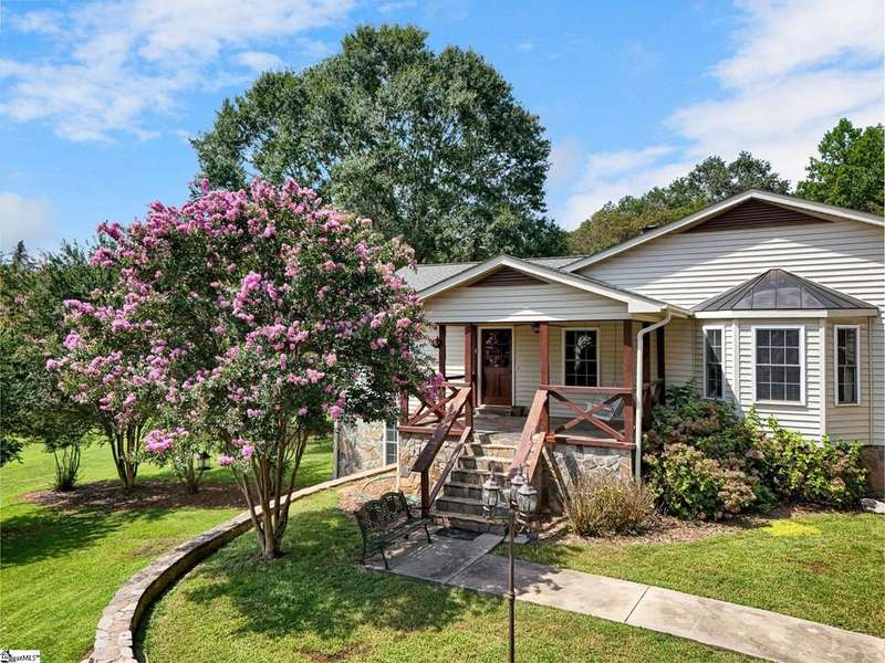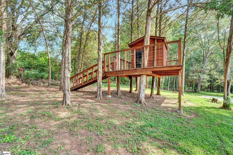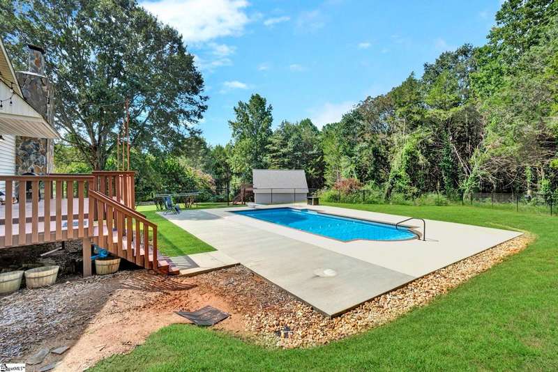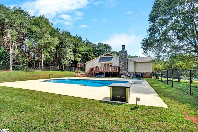Crisp mornings, golden afternoons, and the sound of leaves crunching underfoot?..547 Crest Drive is where your fall begins. Set on 4.4 acres in Easley, this home is all about spreading out, gathering often, and soaking up the season from every angle. Picture yourself on the wide front porch, wrapped in a blanket with a warm mug in hand, watching the trees shift into their autumn colors as a cool breeze drifts by. From the moment you arrive, the true stone accents and craftsman charm set the scene for a home that feels both timeless and inviting.The porch itself is a stunner?.tiled, wide, and made for rocking chairs, pumpkin displays, and quiet evenings spent swapping stories as the sun slips down. Step inside and you'll find a family room crowned with wood beams and anchored by a stone fireplace that's begging to be lit when the evenings turn chilly. The kitchen is built for togetherness, with cabinets for all your serving pieces, counters for Thanksgiving spreads, and a huge island where casseroles, pies, and cider pitchers have plenty of room to land. Stainless appliances bring a modern shine, and the flow makes it easy to cook, mingle, and laugh with family and friends. Slide open the custom barn doors, crafted with care, and step out to a backyard designed for year-round living. The 18x40 heated saltwater pool means autumn afternoons can still end with a splash. LED lights glow into the crisp nights, and the jetted swim-out is just the spot to relax while the air cools around you. The detached 24x30 garage has a huge loft upstairs, unfinished but full of promise. Imagine a game room for football Saturdays, a guest space for holiday visitors, or a creative studio for those winter projects. The second-story deck is perfect for catching sunsets that paint the sky in orange and gold. Back inside, the primary suite is calm and roomy, a true retreat when the day winds down. The private bath features double sinks to keep mornings less hectic. Guest rooms are generous and closets are ready for boots, sweaters, and all things fall. The unfinished basement and crawlspace mean you'll never run out of space for storage, hobbies, or expansion. Step outside and breathe deep. The 4.4 acres give you open yard and shady woods, with plenty of room to garden, host bonfires, or simply watch deer wander through as the season shifts. There's even a treehouse for weekend adventures and starlit campouts. All this is just minutes from Easley and Greenville, close to shops, restaurants, and everything you need, yet it still feels like your own private retreat. With Pickens County taxes and a new roof added in 2023, the peace of mind here is as sweet as the setting. This home has been cherished, and it shows. Now it's ready for its next season, filled with porch nights, cozy fires, and memory-making at every turn.