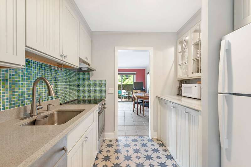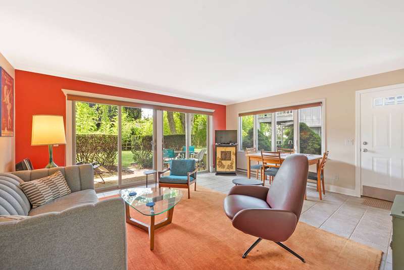 Charming one bedroom, one bath condo with spacious living room with sliders to brick patio. Close to everything. Completely renovated. Galley kitchen with top of the line appliances including washer an dryer.