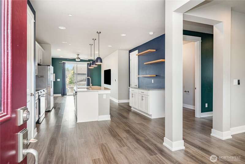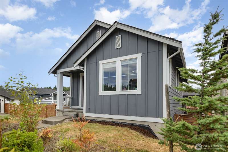 Welcome to this stylish 3-bedroom, 2.5-bath home in the desirable Tehaleh community, thoughtfully crafted by Azure NW. Feeling like new, it boasts a smart layout, quartz countertops, and large windows that flood the home with light. Enjoy built-in shelving throughout, including a 3-desk office setup, a home theater with in-wall speakers, and a covered back patio with a built-in playhouse/storage space. The fully fenced yard has locking gates, and the extra-wide driveway provides a second parking spot. Nestled in a vibrant community with scenic trails and parks—and located in the sought-after Sumner School District. This home offers the perfect blend of comfort, charm, and modern convenience. Don’t miss your chance at the Tehaleh lifestyle!