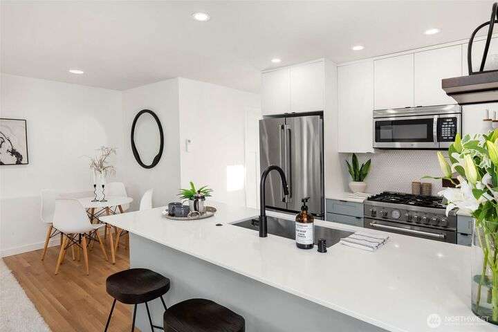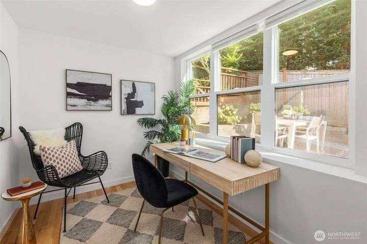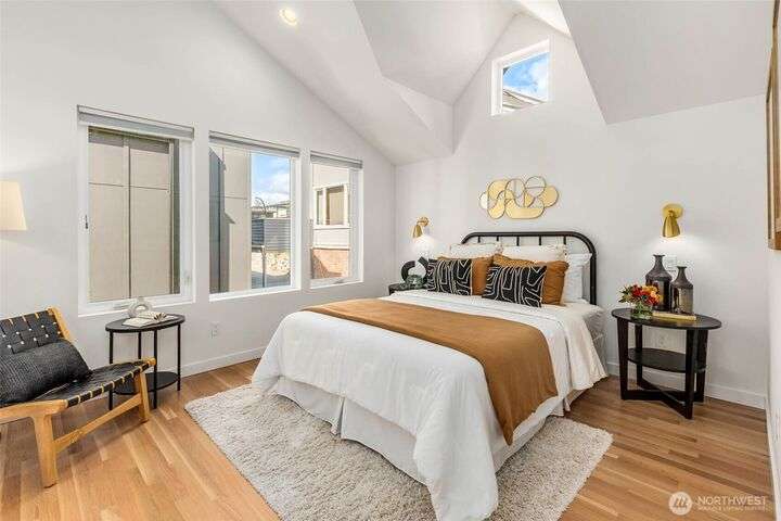 Exceptional 3 bed, 1.75 bath home in Seattle’s coveted North Beach community. Stylish and functional, it features modern design, high-end finishes, and cozy oak floors that bring warmth and elegance to every room. The smart layout offers generous storage and flexible living. A premium open-concept kitchen flows to a spacious, fully fenced yard with glimpses of the Sound—perfect for entertaining or relaxing. A main-floor bedroom adds convenience, while upstairs you'll find two more bedrooms, including a serene primary suite with vaulted ceilings and a large closet. Parking with EV charging station. Enjoy easy access to Ballard, Golden Gardens, Carkeek Park, and private community beach access—North Beach living at its best.