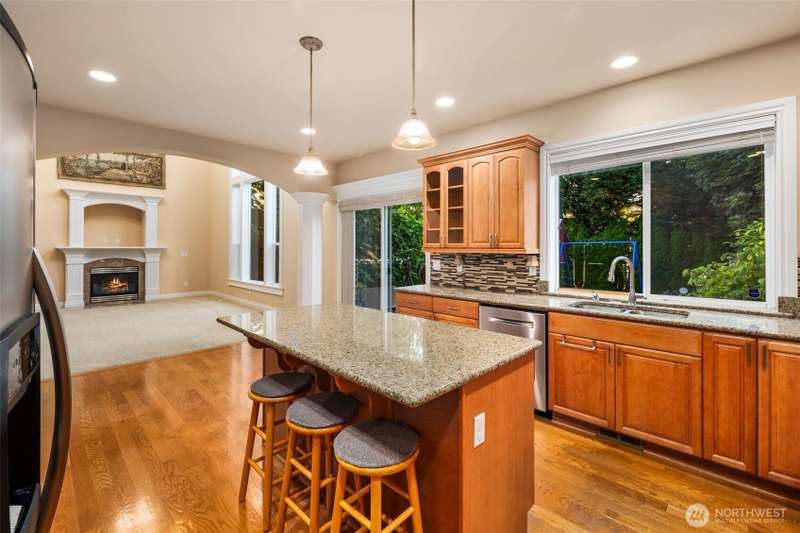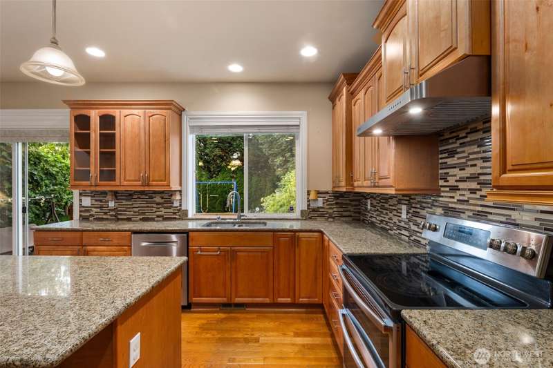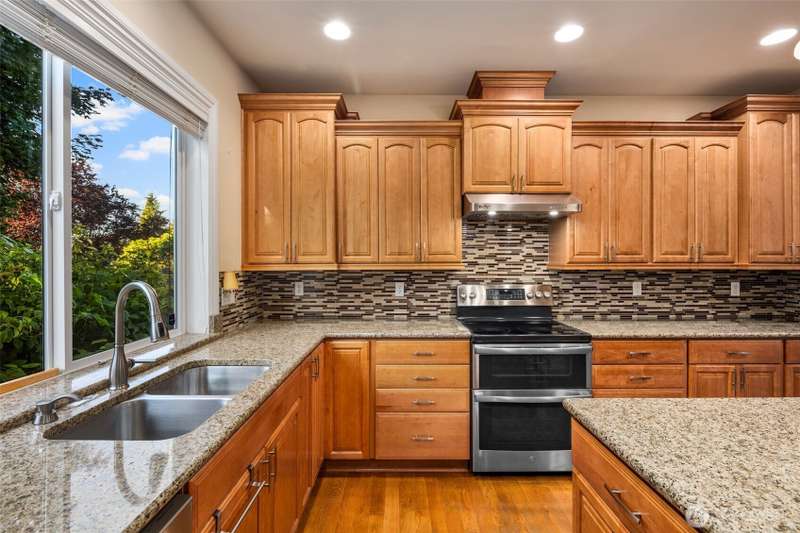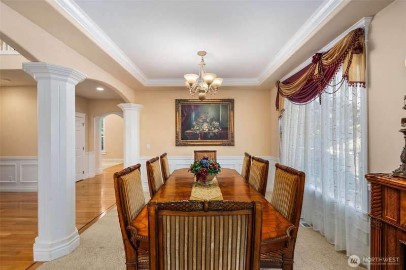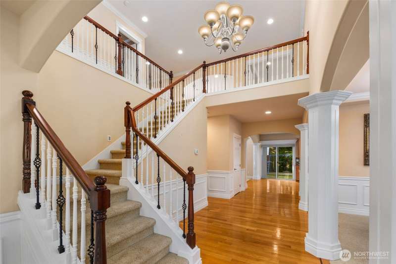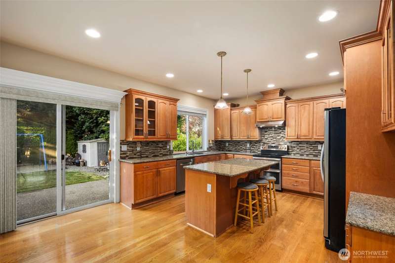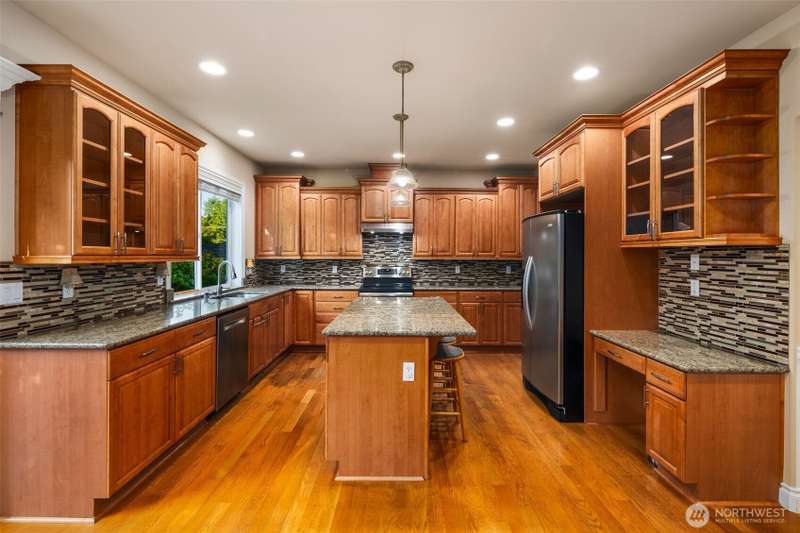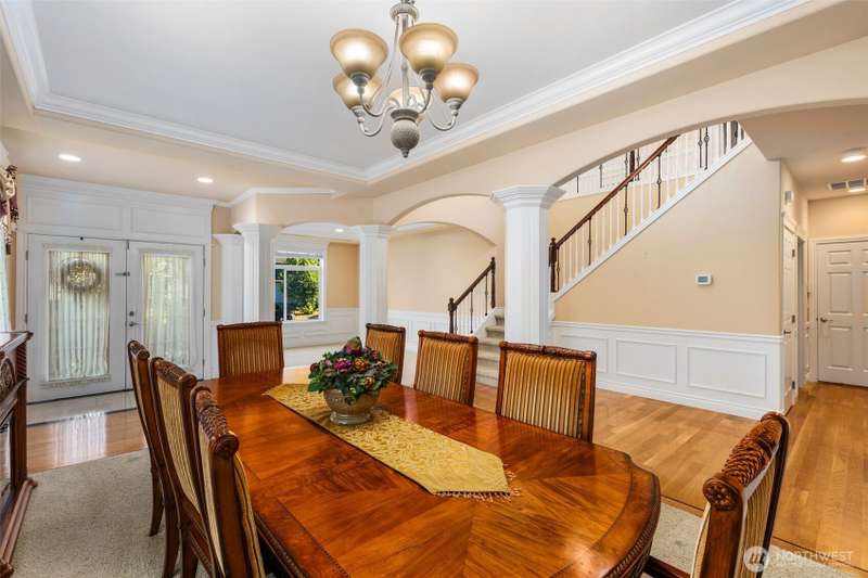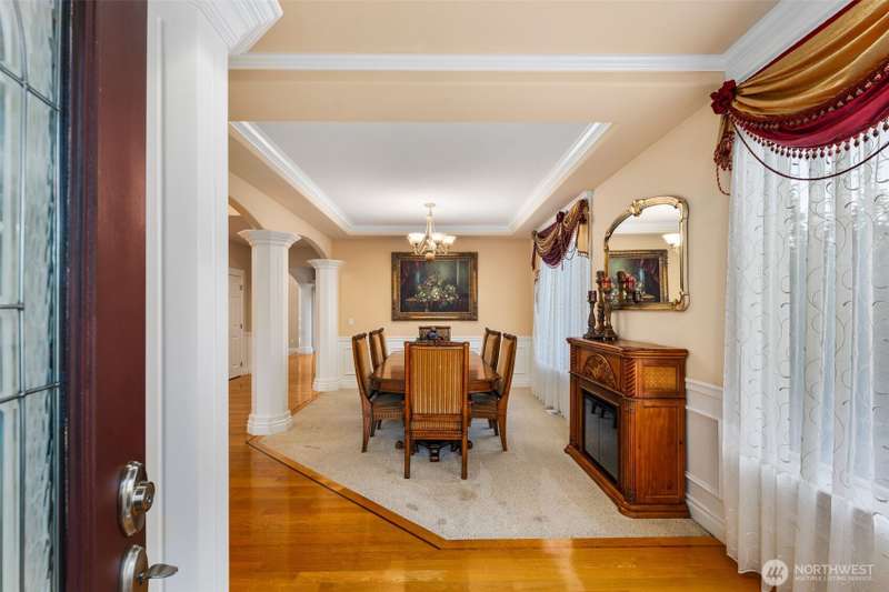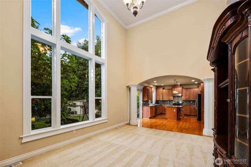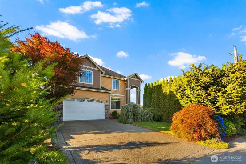 Crafted with elegance and function, this 3,320 sq ft 4 bed, 3.5 bath home in Kent offers refined living just minutes from Lake Meridian shopping centers and major routes. Soaring vaulted ceilings and custom columns create a dramatic first impression in the light-filled living room. The gourmet kitchen flows seamlessly into the dining and family areas, perfect for gatherings. A spacious primary suite features a spa-like bath and walk-in closet. Refresh in the fully landscaped backyard and enjoy the fruit bearing trees and plants. Enjoy a built-in vacuum system, generous bedrooms, and a huge tandem garage with room for 3+ cars, storage, or a workshop, 240V for Tesla or EV. Custom finishes throughout affordable yet luxurious home.