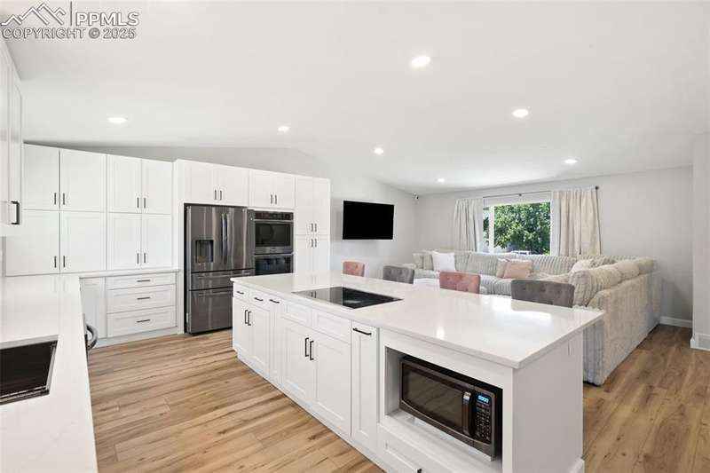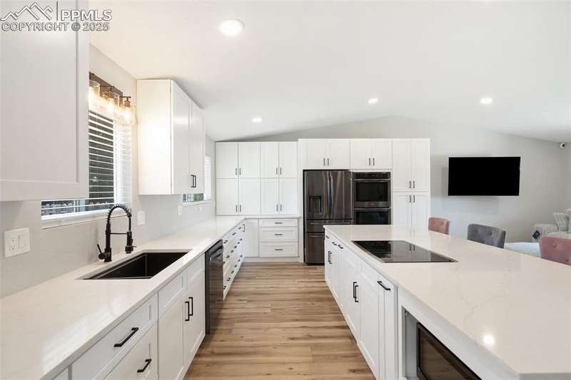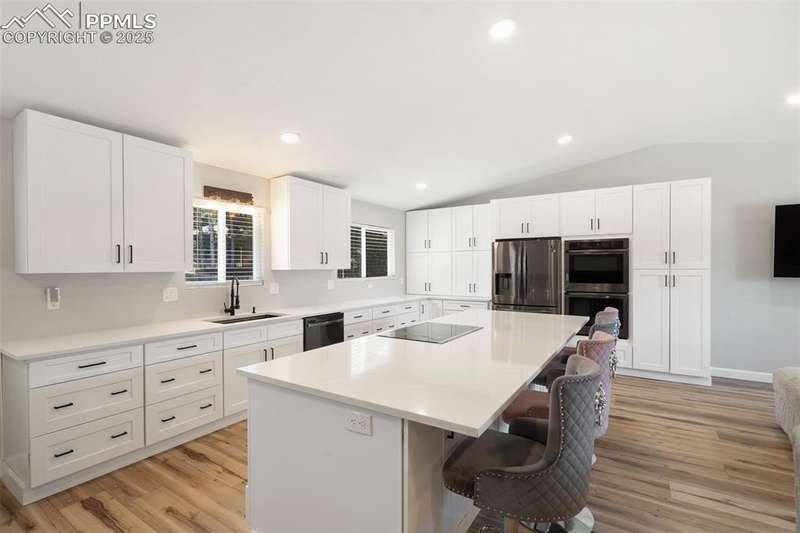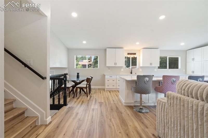 THIS IS THE ONE!!! Located in the heart of Village Seven—one of Colorado Springs’ most sought-after neighborhoods—this beautifully remodeled home offers the perfect blend of modern style and timeless comfort. Enjoy a large lot size, mature trees, and unbeatable access to parks, schools, and the Homestead Trail. Inside and out, no detail has been overlooked! Recent updates include a new roof and siding (2021), brand-new water heater (2025), fresh interior and exterior paint, and luxury vinyl plank flooring throughout the main levels. The redesigned, gorgeous kitchen is a true standout, featuring custom soft-close cabinetry, abundant pantry and drawer storage, sleek new appliances, and designer lighting and fixtures. All bathrooms have been stylishly renovated with new tile, vanities, tub, and fixtures, while recessed lighting and modern finishes elevate every space. With nearly 3,000 square feet, the layout includes 4 spacious bedrooms, 2.5 baths, a dedicated laundry room with cabinetry for additional storage, and multiple living areas perfect for gathering or relaxing. The lower-level family room features a cozy wood-burning fireplace and walk-out to the back patio! Upstairs, you’ll find all four bedrooms with plush patterned carpeting, including a spacious primary suite with a beautifully tiled walk-in shower. The finished basement adds even more flexible living space, complete with brand new carpeting and a multitude of options! The fully landscaped backyard with decorative rock, mulch, and a wood burning fire pit is the perfect haven for entertaining and family fun! Beautifully and meticulously updated, this home combines a fantastic location, space, and style—just steps from everything Village Seven has to offer. Plus, it's located within the highly regarded District 11 school system and offers quick access to the Powers Corridor for shopping, dining, and everyday convenience.