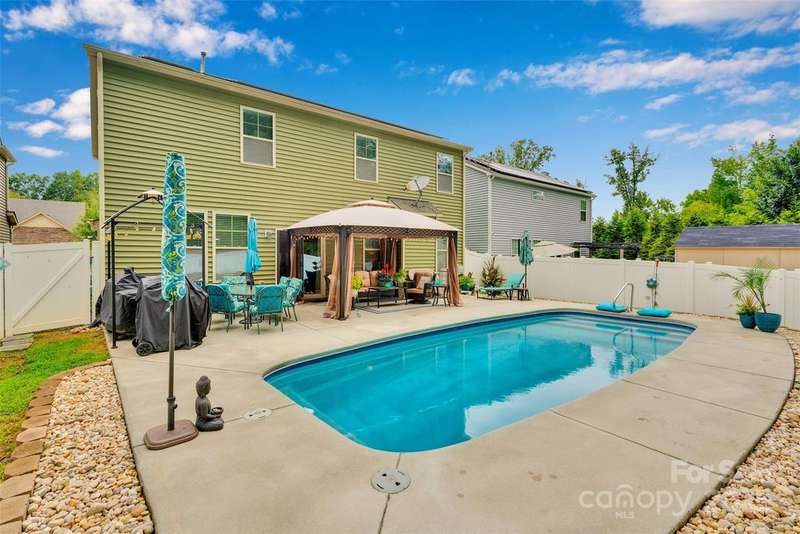 Welcome to your new oasis at Michael Crossing. Built in 2017, boasting 5 bedrooms and 3 bathrooms including a guest suite on the main level; and solar panels make ing this home energy efficient and providing ample space perfect for all your needs. Whether working from home in your spacious office, entertaining in the large open kitchen, complete with a gas range, oversized granite island and butlers pantry, lounging by the saltwater pool in your fully fenced backyard or watching a movie in the upstairs loft, the possibilities are endless. Located just outside of the university area, minutes away from UNCC Botanical Gardens, Reedy Creek Nature Center, multiple dining options and access major highways, this property guarantees a quiet escape while still being close to all the action. Come check it out today!