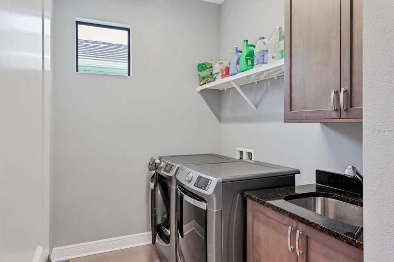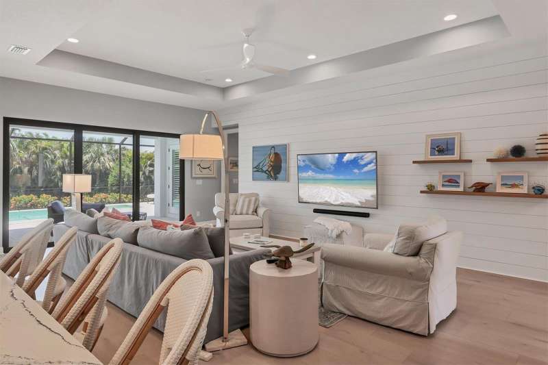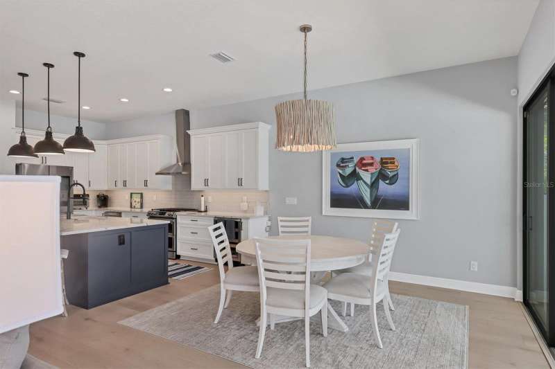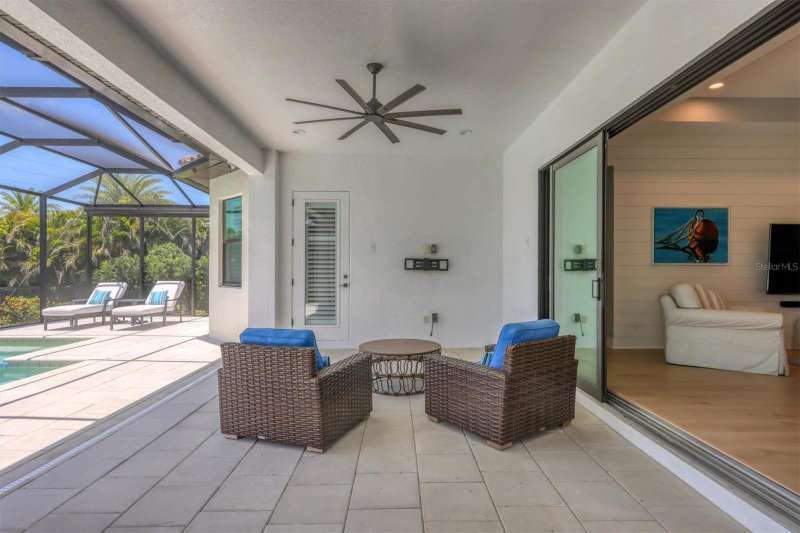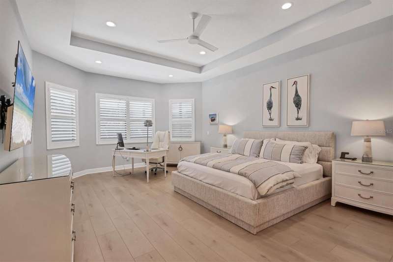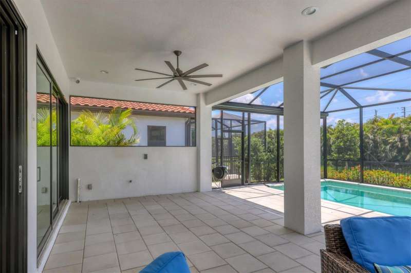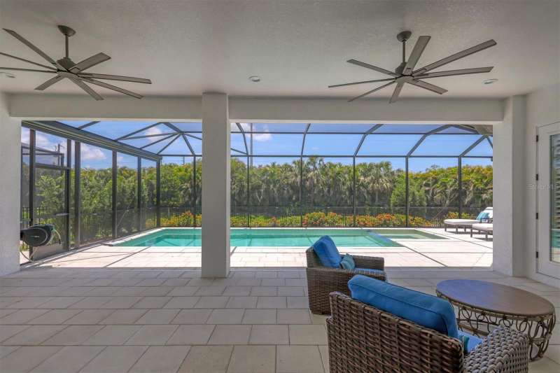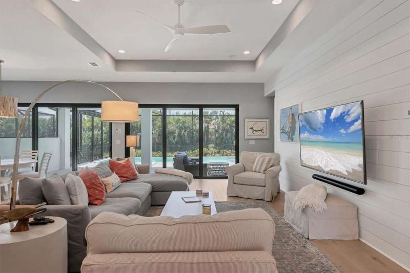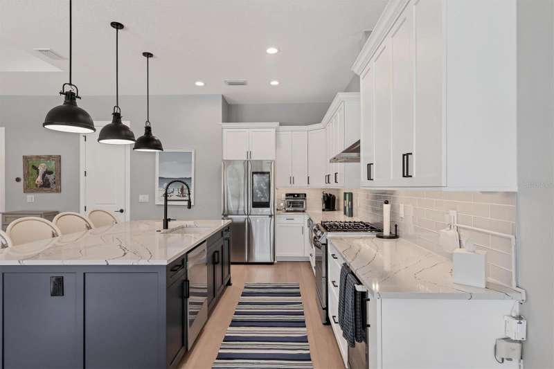 Price improvement. Heritage Builders, the finest custom home builder in Sarasota, created this stylish enclave in 2022. This home exemplifies modern coastal elegance. Offering over 2,150 square feet of impeccably designed living space blending sophistication with everyday comfort. Enter through grand double glass doors into a foyer with soaring ceilings, dramatically lit by a designer LED chandelier. The floors are covered in Wide Plank Luxury Laminate throughout the main living areas and tile in the bathrooms. The expansive gathering room makes a striking impression with its feature wall opening seamlessly to the covered lanai, creating an ideal space for entertaining. The chef inspired gourmet kitchen is a dream for anyone looking for a natural gas range, stainless steel appliances, crisp white cabinetry, a bold navy island, and quartz countertops, it’s both functional and visually striking. The oversized island comfortably seats four and flows effortlessly into the dining area, living space, and out to the lanai through sliding glass doors, offering a seamless indoor-outdoor lifestyle. The spacious primary suite provides a peaceful retreat, a custom walk-in closet with wood shelving, and a luxurious ensuite bath featuring a double vanity. The home’s smart split floor plan ensures privacy, with two additional guest bedrooms—one with its own ensuite bath and walk-in shower, and the other conveniently located near a full bath with a tub/shower combination. Practical features include a dedicated laundry room with a utility sink and ample storage, along with a two-car garage finished with epoxy-coated floors. Outdoors, enjoy your own private sanctuary featuring a resort-style pool and spa, generous deck space for lounging, and a covered lanai perfect for al fresco dining. Motorized privacy screens provide added comfort, while the fenced-in yard is ideal for pets or play. Located in the gated enclave of Sandhill Lake, home to just over 40 residences, you'll appreciate the warm, close-knit community feel along with amenities such as a community pool and clubhouse. All of this is just minutes from Sarasota’s premier shopping, dining, parks, and the world-renowned Siesta Key Beach. Call to schedule a private showing.