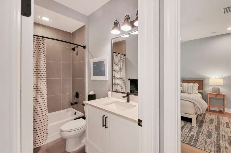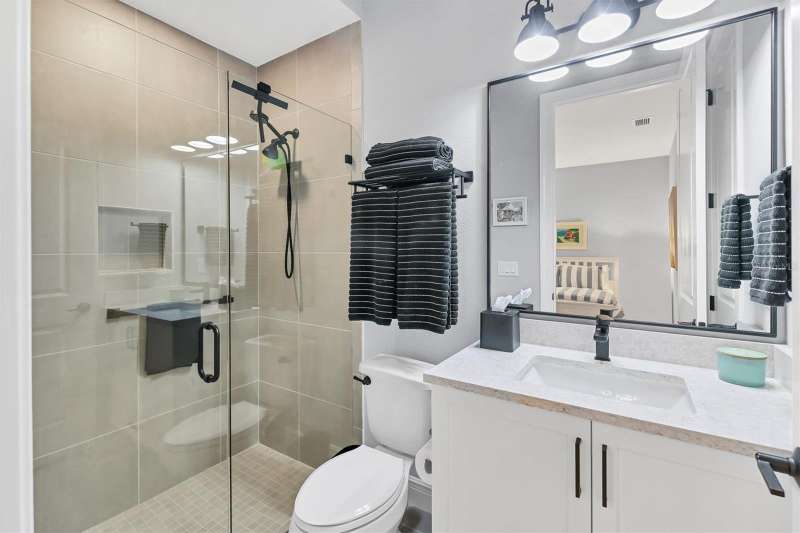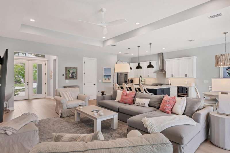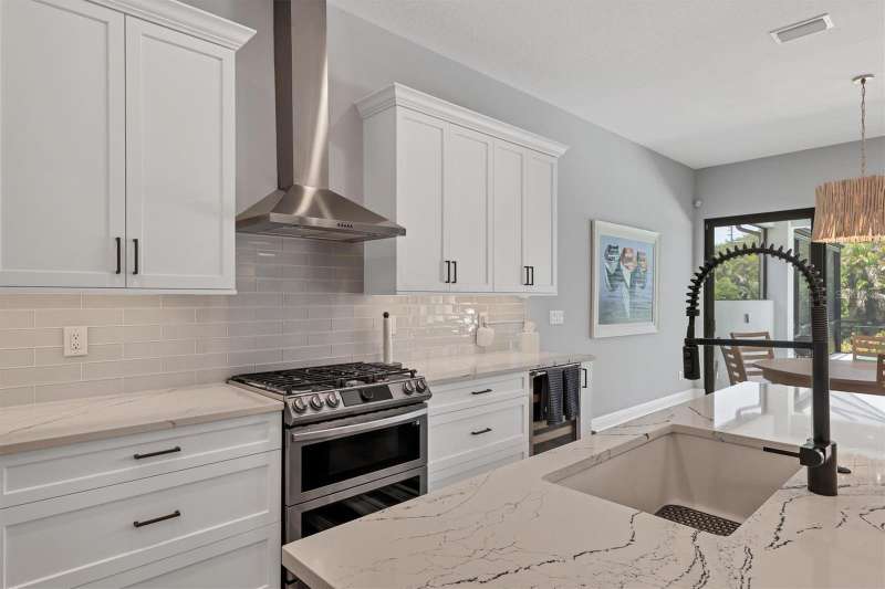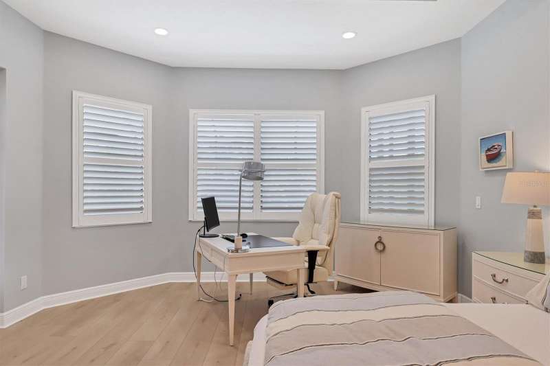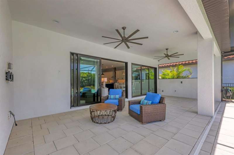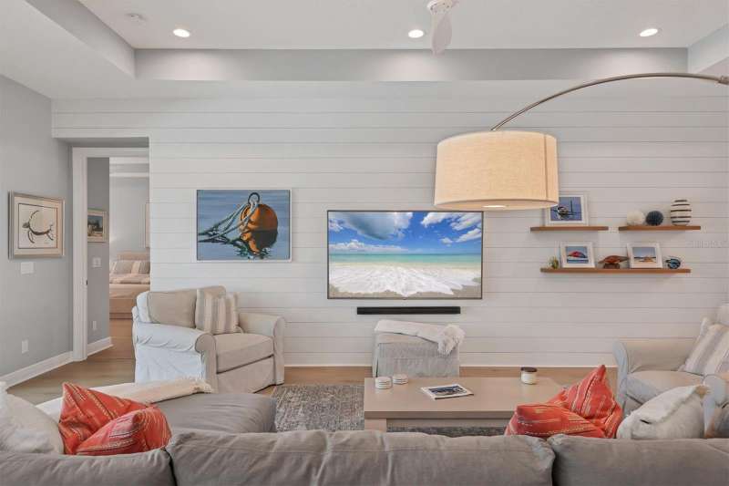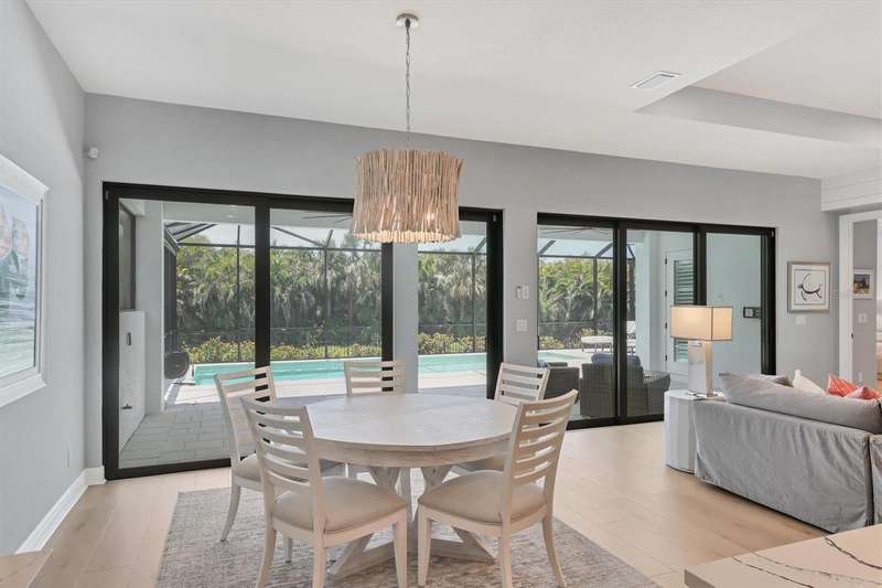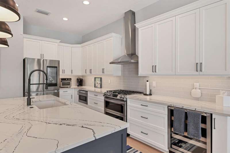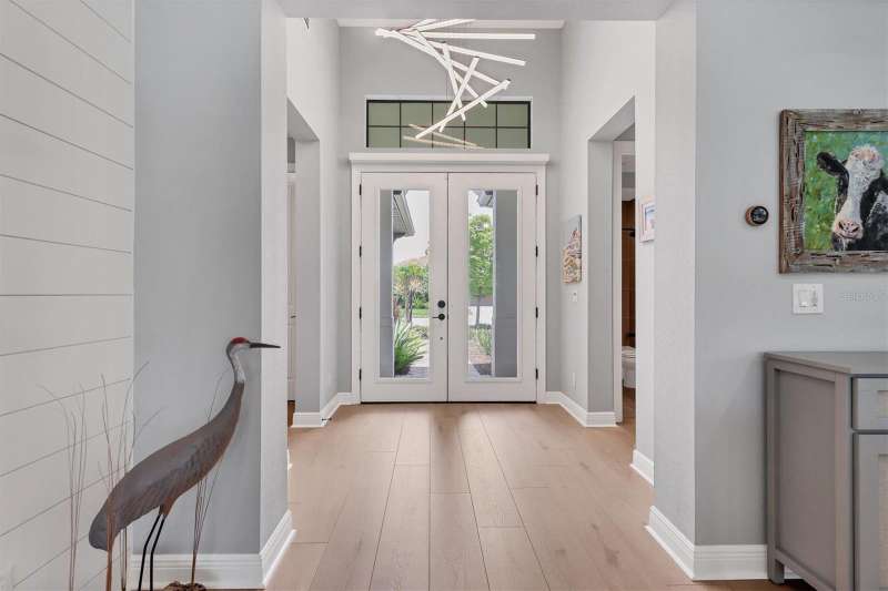 Price improvement. Heritage Builders, the finest custom home builder in Sarasota, created this stylish enclave in 2022. This home exemplifies modern coastal elegance. Offering over 2,150 square feet of impeccably designed living space blending sophistication with everyday comfort. Enter through grand double glass doors into a foyer with soaring ceilings, dramatically lit by a designer LED chandelier. The floors are covered in Wide Plank Luxury Laminate throughout the main living areas and tile in the bathrooms. The expansive gathering room makes a striking impression with its feature wall opening seamlessly to the covered lanai, creating an ideal space for entertaining. The chef inspired gourmet kitchen is a dream for anyone looking for a natural gas range, stainless steel appliances, crisp white cabinetry, a bold navy island, and quartz countertops, it’s both functional and visually striking. The oversized island comfortably seats four and flows effortlessly into the dining area, living space, and out to the lanai through sliding glass doors, offering a seamless indoor-outdoor lifestyle. The spacious primary suite provides a peaceful retreat, a custom walk-in closet with wood shelving, and a luxurious ensuite bath featuring a double vanity. The home’s smart split floor plan ensures privacy, with two additional guest bedrooms—one with its own ensuite bath and walk-in shower, and the other conveniently located near a full bath with a tub/shower combination. Practical features include a dedicated laundry room with a utility sink and ample storage, along with a two-car garage finished with epoxy-coated floors. Outdoors, enjoy your own private sanctuary featuring a resort-style pool and spa, generous deck space for lounging, and a covered lanai perfect for al fresco dining. Motorized privacy screens provide added comfort, while the fenced-in yard is ideal for pets or play. Located in the gated enclave of Sandhill Lake, home to just over 40 residences, you'll appreciate the warm, close-knit community feel along with amenities such as a community pool and clubhouse. All of this is just minutes from Sarasota’s premier shopping, dining, parks, and the world-renowned Siesta Key Beach. Call to schedule a private showing.