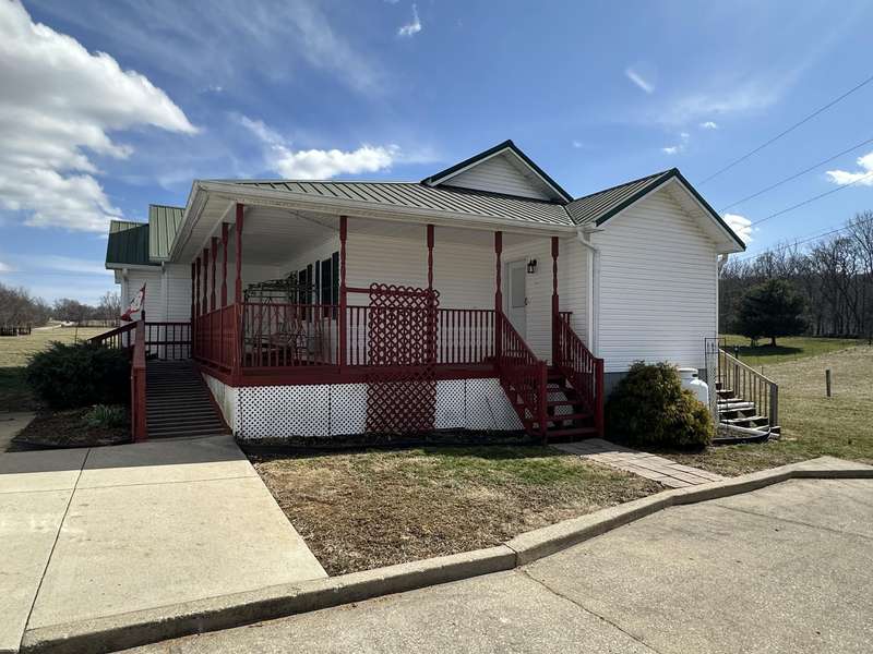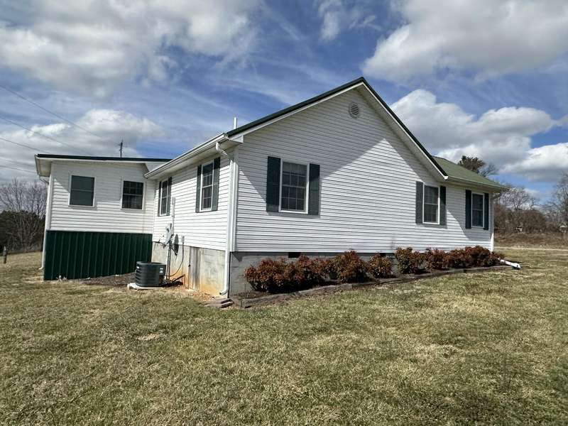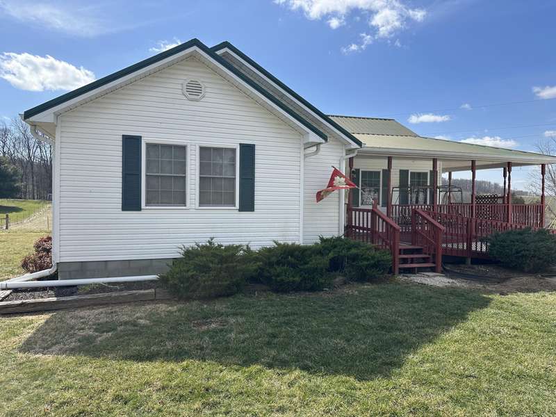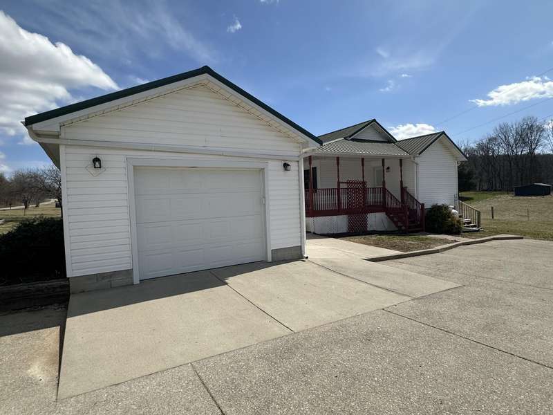 This vinyl sided ranch style well maintained home built in 2007 contains 1600 +/- Sq Ft of living area featuring large kitchen/dining room combination, living room, 3 BR, 2 handicap full baths, sun room off kitchen (built in 2023). Other amenities include: Detached one car garage built in 2016 with block foundation, auto door opener, insulated w/ 30R roof & 19R walls, 18x40 block building which could be used for rental, storage, workshop, etc., on slab with city water & septic, kennel, and concrete driveway. Additional amenities include a 12x12 mower/tool building installed in 2019 with steel frame siding and roof, double 36' doors. Portable & handicap accessible. Fenced for livestock with small barn for horses, city water with frost proof spigot & situated on 3.233 acres!