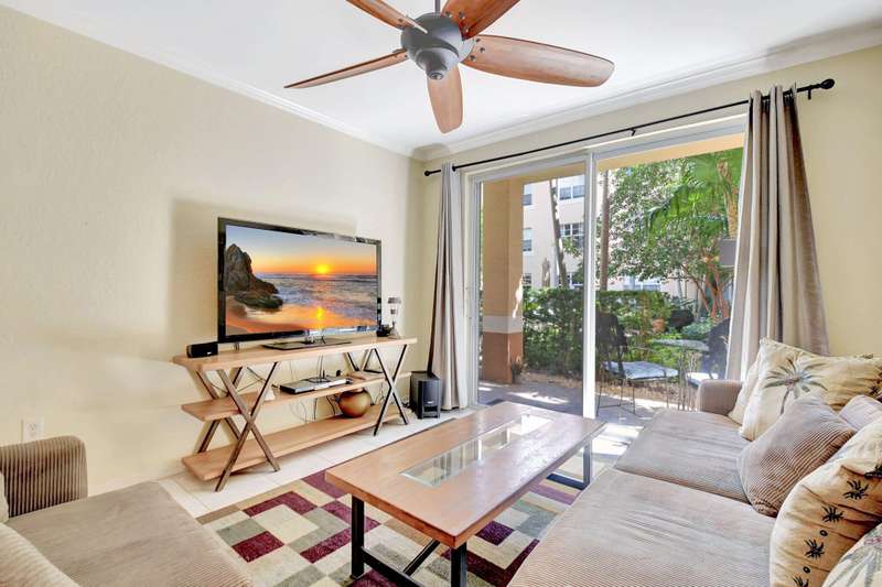 Investors Welcome- this unit can be rented right away and is sold furnished so you can start generating income! Luxurious resort style living awaits in this upscale gated community ideally located along the Intracoastal Waterway. This inviting first floor condo features a split bedroom floor plan, lush private patio, an open concept living/kitchen area, 2 bedrooms, 2 full baths, full size washer/dryer & 2 garage parking spaces. New AC & WH installed 2024! Minutes to the beach, downtown West Palm Beach, Palm Beach Island & convenient to PBI Airport, this deluxe all ages community offers concierge, 24 hour security, Olympic size pool with water views, party pavilion, fitness studio, sauna, clubroom, billiards, business center, grill plaza & dog park! 30 day rentals allowed.
