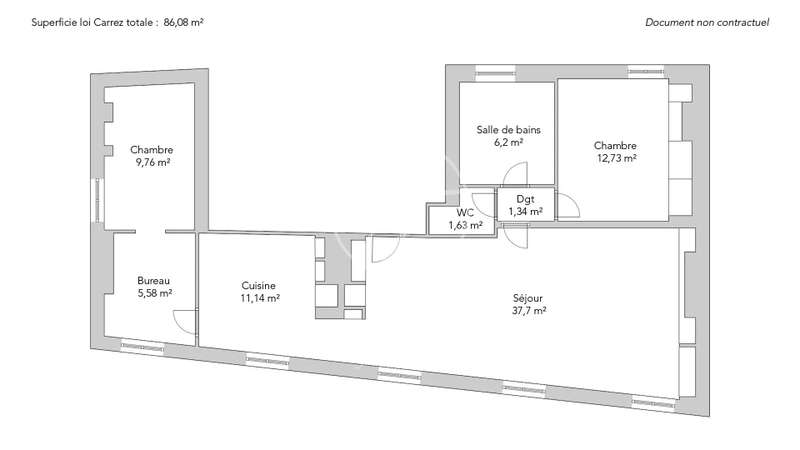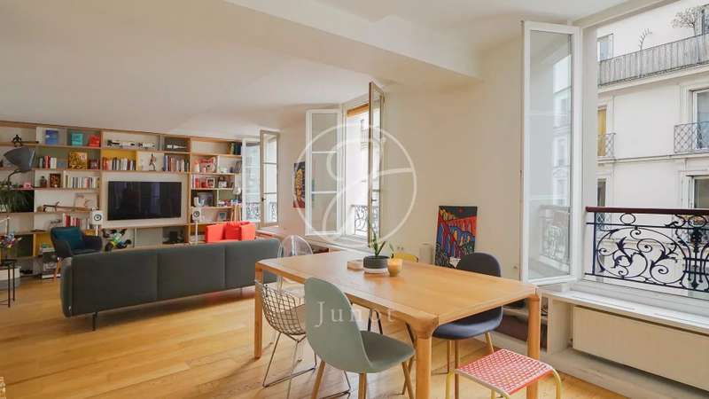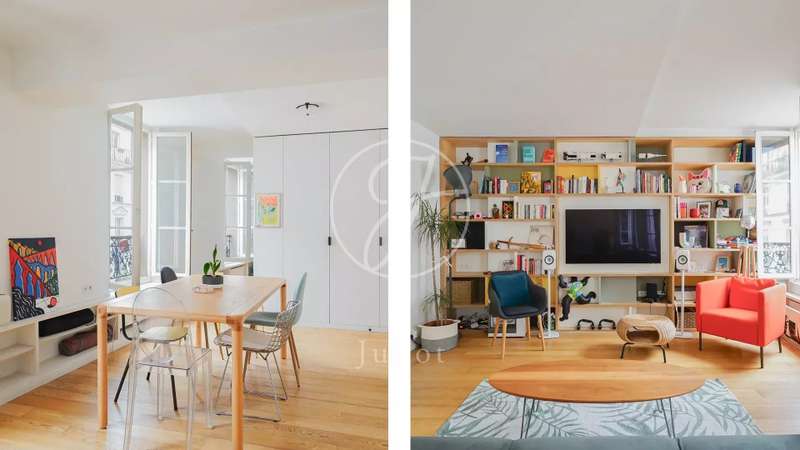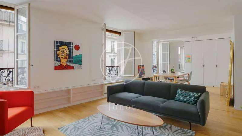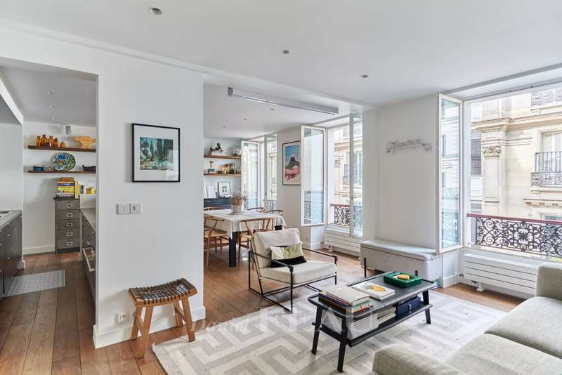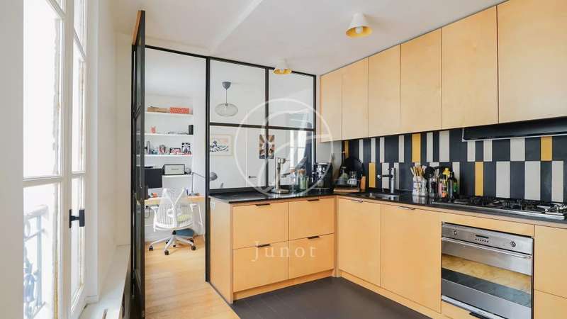 Ideally located close to shops, transport and the Canal Saint-Martin, this 86.08sqm loi Carrez walk-through apartment on the third floor of a staircase building offers an optimal layout and plenty of natural light. In very good condition, it features a vast living room with a lounge and dining room, highlighted by three large windows. The semi-open kitchen, enhanced by an elegant glass roof, adds a touch of modernity while retaining a convivial feel. The sleeping area includes a large bedroom overlooking the courtyard, with an unobstructed view and plenty of storage space, a second bedroom with built-in closets, accessible from the living room, and a bright study. The bathroom is spacious and functional, with a bathtub, shower and window. The toilet is separate. This quiet, light-filled, walk-through property combines charm, functionality and a prime location. EXCLUSIVITY.
