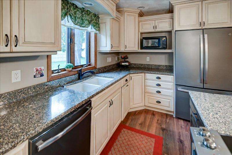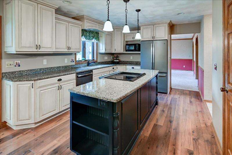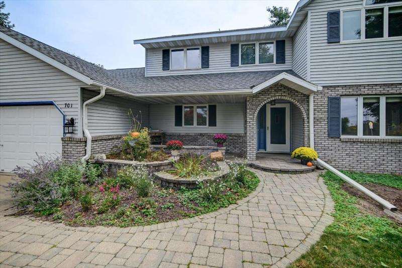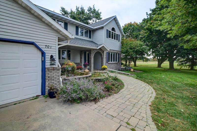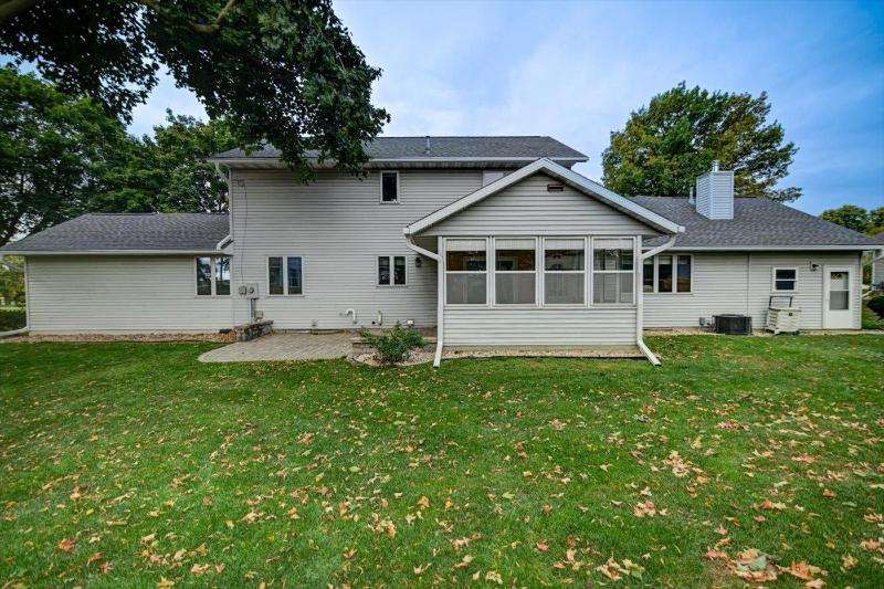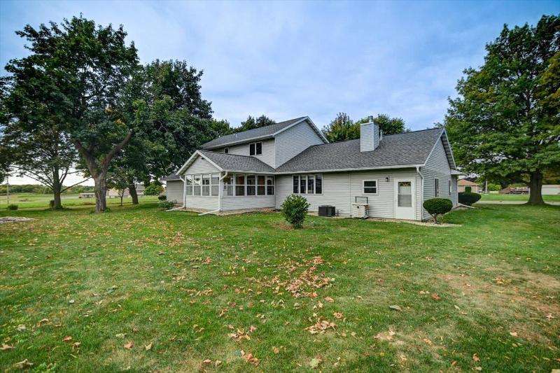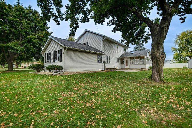 Beautiful 2,816 square foot two-story home on .65 acres, a rare find in the city of Madison. 1 block from Holy Cross school/church & daycare. Features include a three-car garage with a separated heated shop, new roof & leafguard gutters and downspouts & 2 brick patios. The lower level has a theater room and two other rooms that are mostly finished (unfinished ceilings & flooring 18x12 & 20x16). There's also a 15x13 heated 3-season porch, large shed, gas fireplace, updated kitchen with quartz countertops and the list goes on! This is a must-see. First floor office 19x14 could be converted to a 1st floor bedroom.