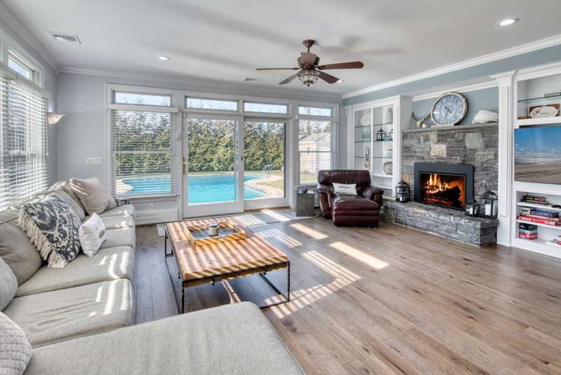 Rental Reg. #RP250178 Resort-like living, in this true vacation offering situated in Pine Neck Landing with a private beach. 6 bedrooms, including 2 primary en suites (one on the main level), 2 living spaces, a chef's kitchen and dining area. The open floor plan affords a very airy and bright interior with wonderful natural light. On the second floor, there are 3 bedrooms, one bathroom, and a primary en suite. On the lower level is the game room with a small theater area with very comfortable seating, foosball and a professional pool table. A great place to be on a rainy summer afternoon. There is a Sonos sound system throughout the interior and exterior spaces. The home features wood flooring with tile in the bathrooms. The outdoors is summer enjoyment with a huge free-form, heated pool surrounded by pavers, enough lawn for outdoor games, a designated fire pit area, and an outdoor enclosed shower. There are plenty of lounging areas and spaces for dining al fresco. Let's not forget the summer toys, this rental is equipped with Kayaks, paddle boards, bicycles, and a ping pong table. Don't miss viewing this excellent seasonal rental. Listing ID #898452