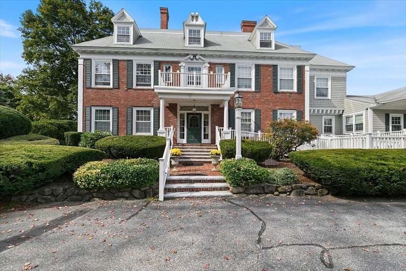 Charming 2-bedroom end unit in elegant PHILLIPS ESTATES walking distance to Phillips Academy, Pike School & downtown Andover w/ easy access to Rtes 93 & 495. Set in a historic 1984 Greek Revival mansion on 1.5 acres, this bright home blends old-world charm w/modern comforts. Enter through stunning Foyer. Features include 9' ceilings, hardwood floors throughout, detailed molding, window seat & unique round windows. The white kitchen offers granite counters. The living room fireplace bears the Latin inscription AD FOCVM COR CALIDVM "At the hearth, a warm heart" symbolizing a welcoming home. The Main bedrm reads AMICIS ET LIBRIS QVID MELIVS "There is nothing better than friends and books." Enjoy in-unit laundry (additional coin-op units in basement) & excellent deeded storage. Freshly painted rooms, a deck off the second bedroom & 2 deeded parking spots complete this impressive condo. Well-maintained grounds & common areas make this a perfect carefree lifestyle or ideal summer retreat.
